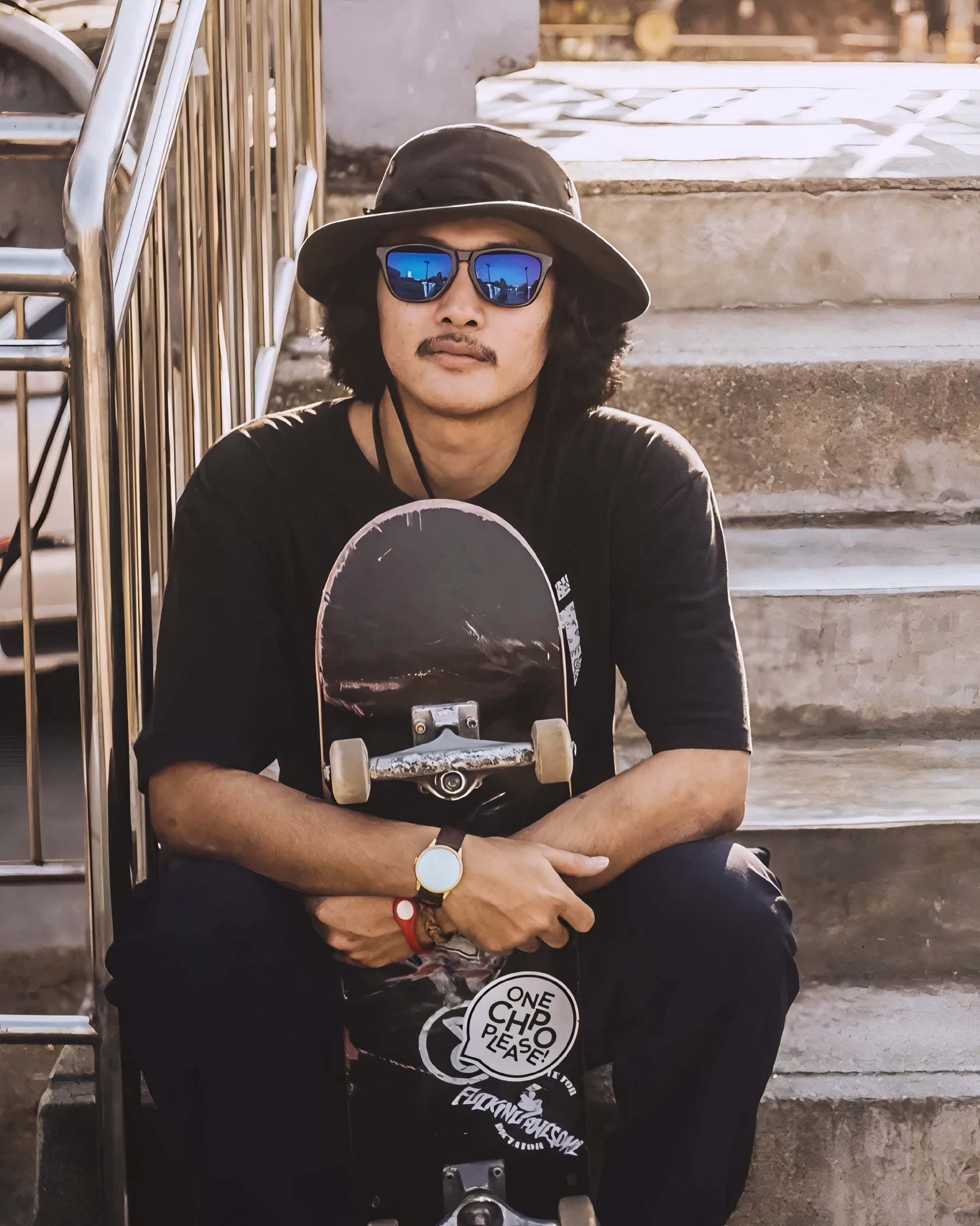 Bodhi frames balance smooth lines with standout simplicity—clean, minimal, and built to last. Black frames with blue lenses made for standout days.