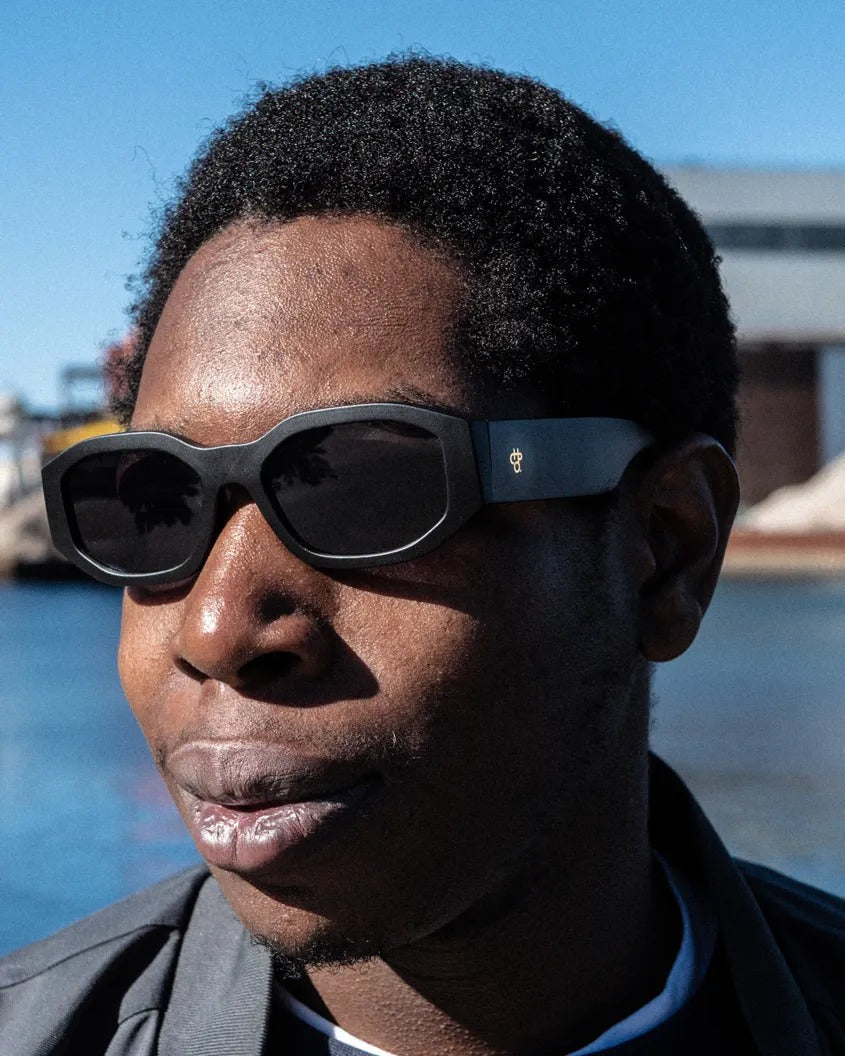 Hello Brooklyn—these frames carry big city energy, classic style, and all-day cool. All-black everything—frames and lenses dialled down for maximum impact.