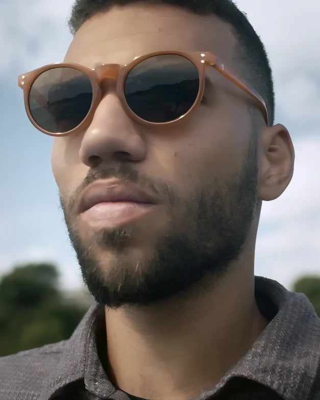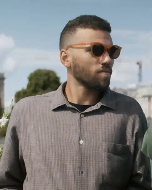 Byron’s slim frames pack minimalism, sharp style, and everyday cool in one. Mustard frames with brown lenses made for standout days.