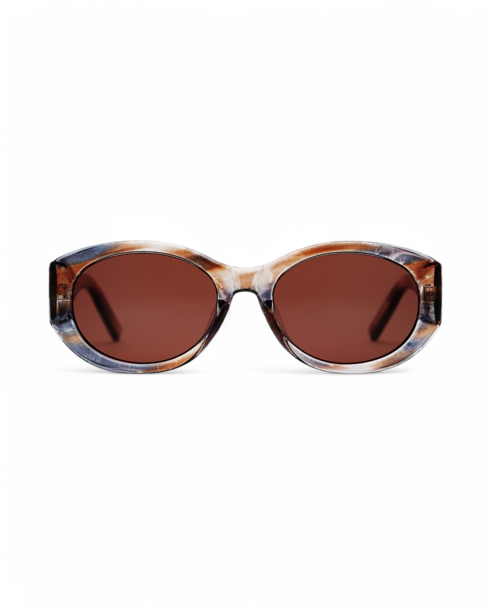 Cleo’s soft lines and round frames make everyday outfits effortlessly cool. Cigar Smoke frames with brown lenses made for standout days.