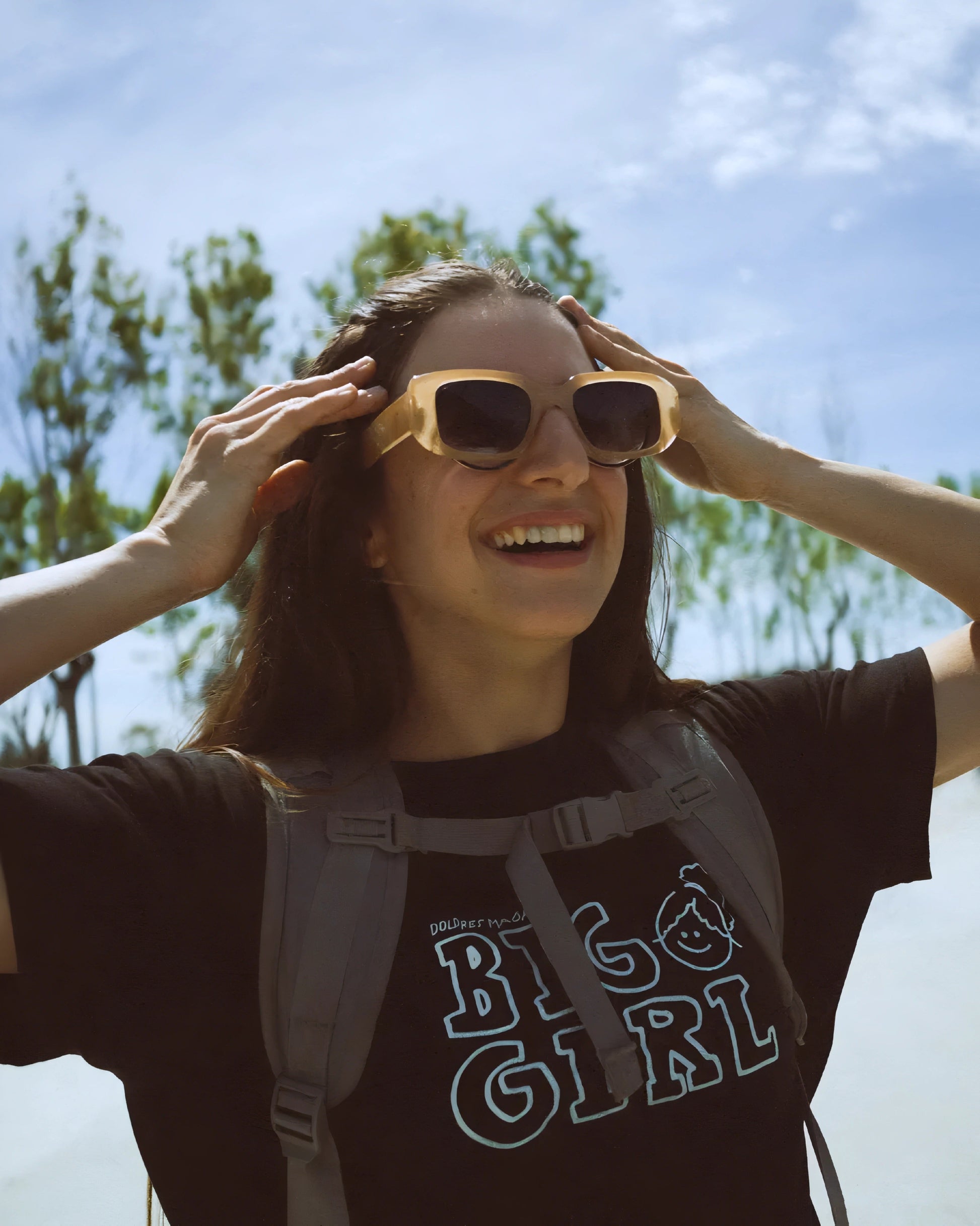 Oversized and unapologetic—Dolores frames add drama to every look. Milky Tea frames with black gradient lenses made for standout days.