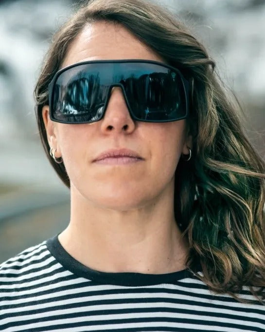 Erica’s oversized square frames bring bold, standout style to any look. All-black everything—frames and lenses dialled down for maximum impact.