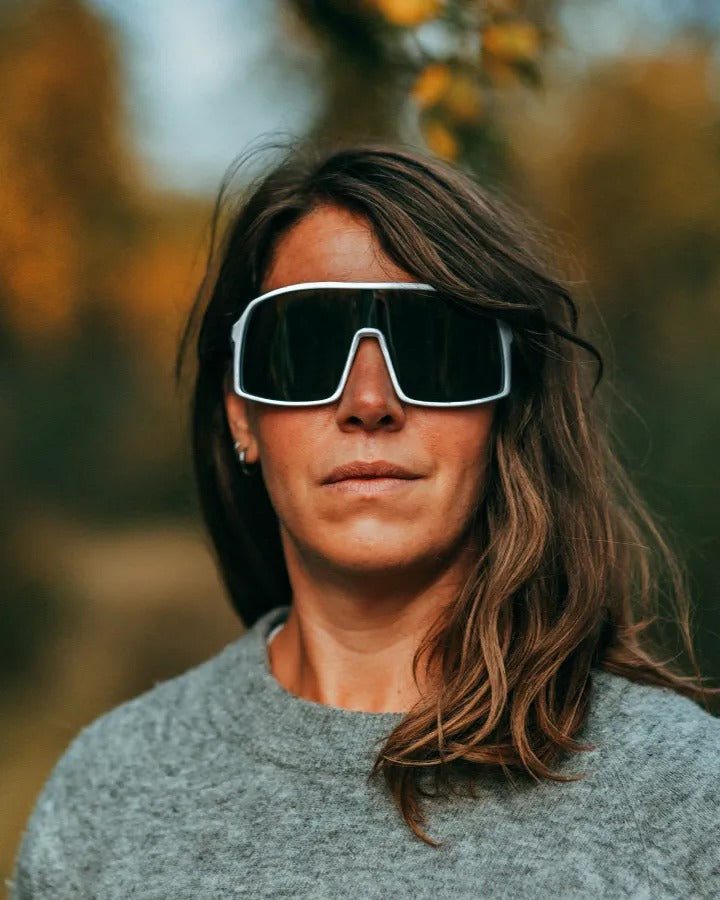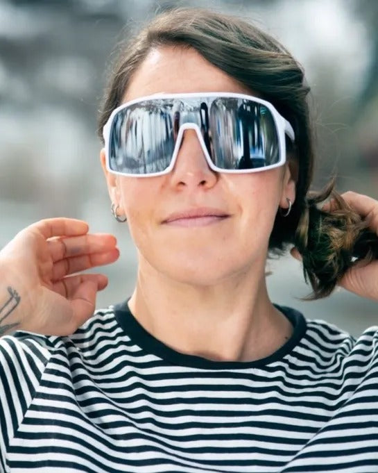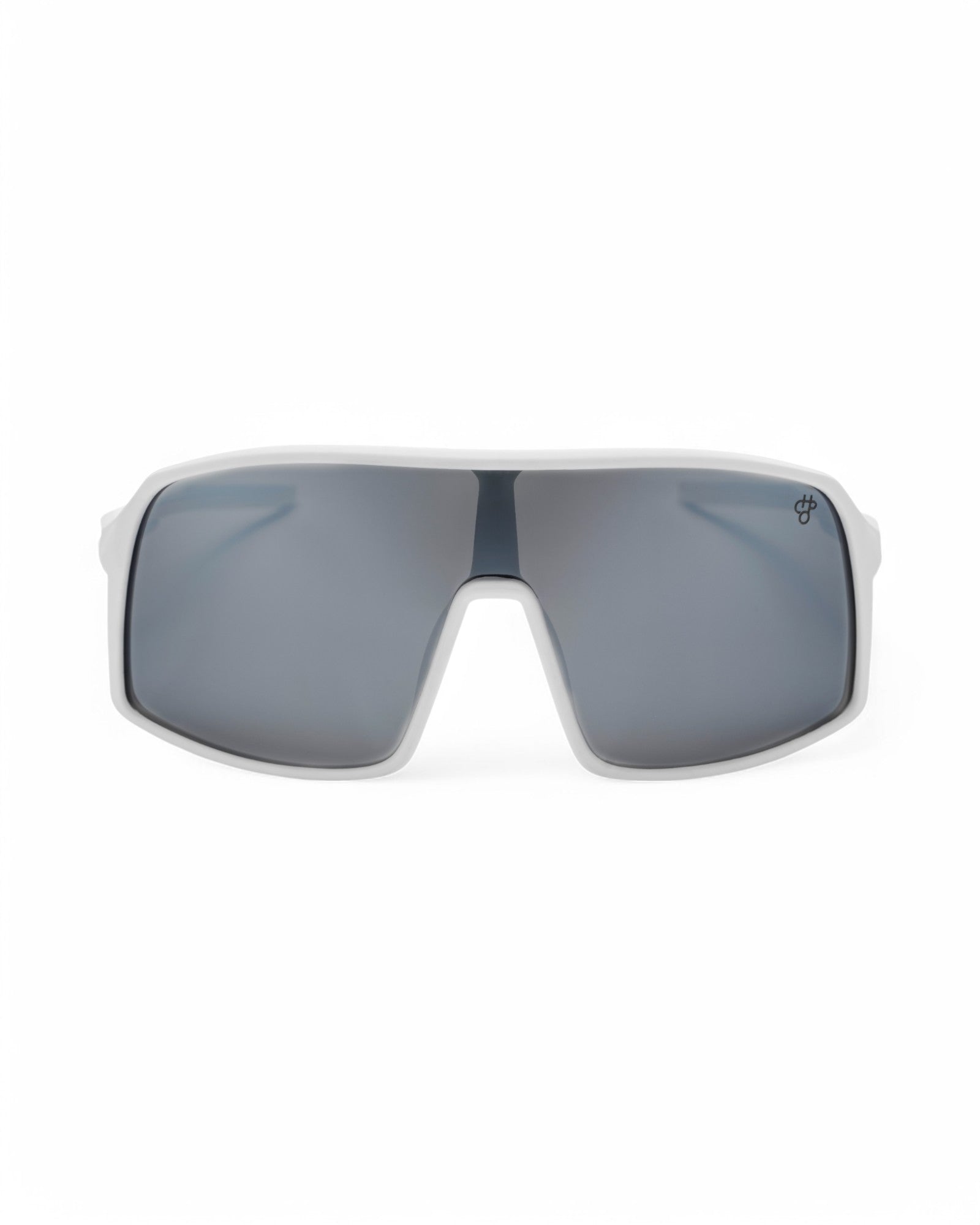 Erica’s oversized square frames bring bold, standout style to any look. White frames with silver mirror lenses made for standout days.