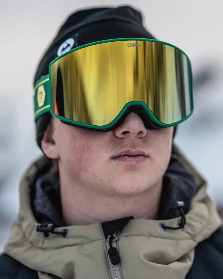 Fiji snow goggles are built for peak days—crisp views, bold looks, all-mountain confidence. Green frames with green lenses made for standout days.