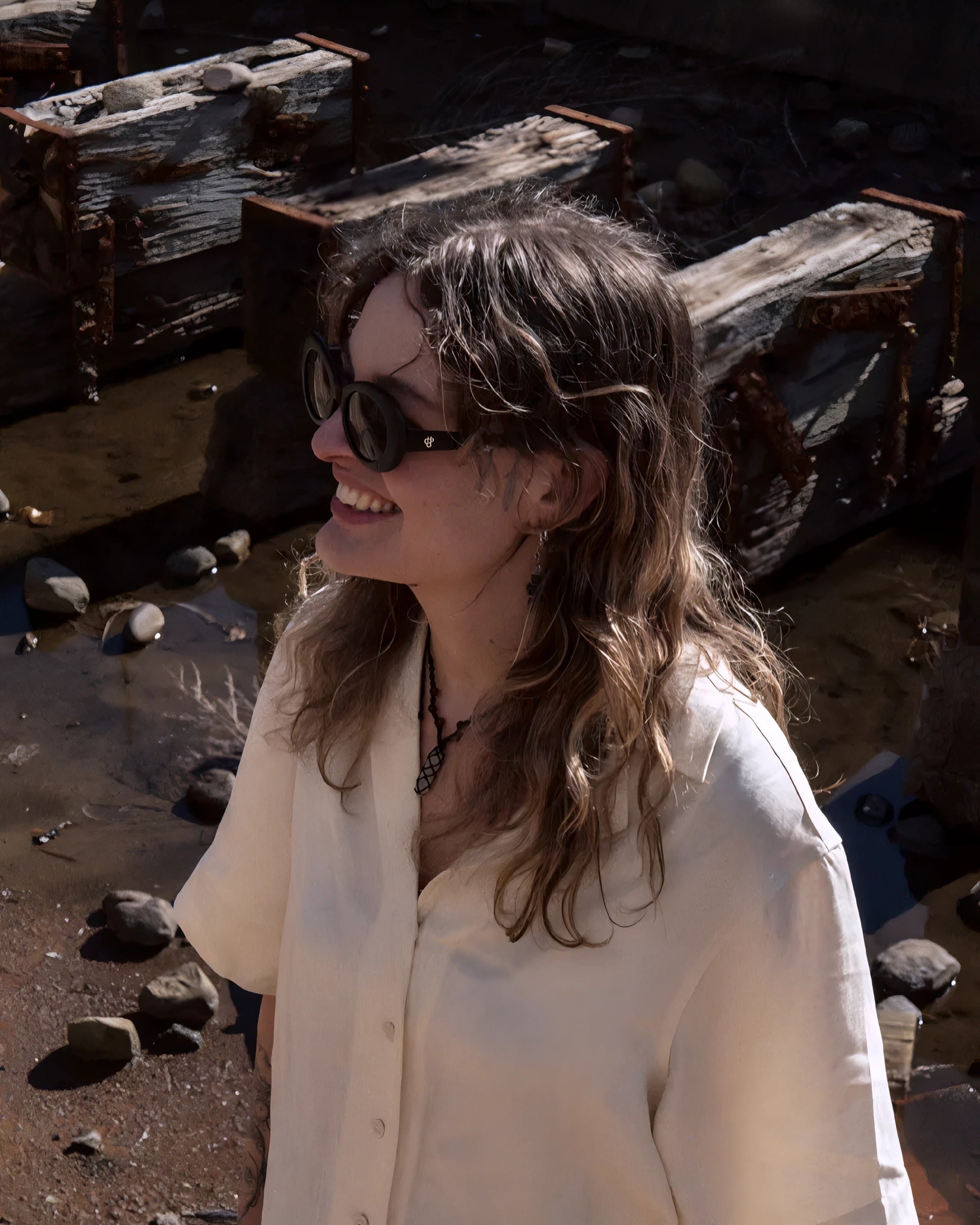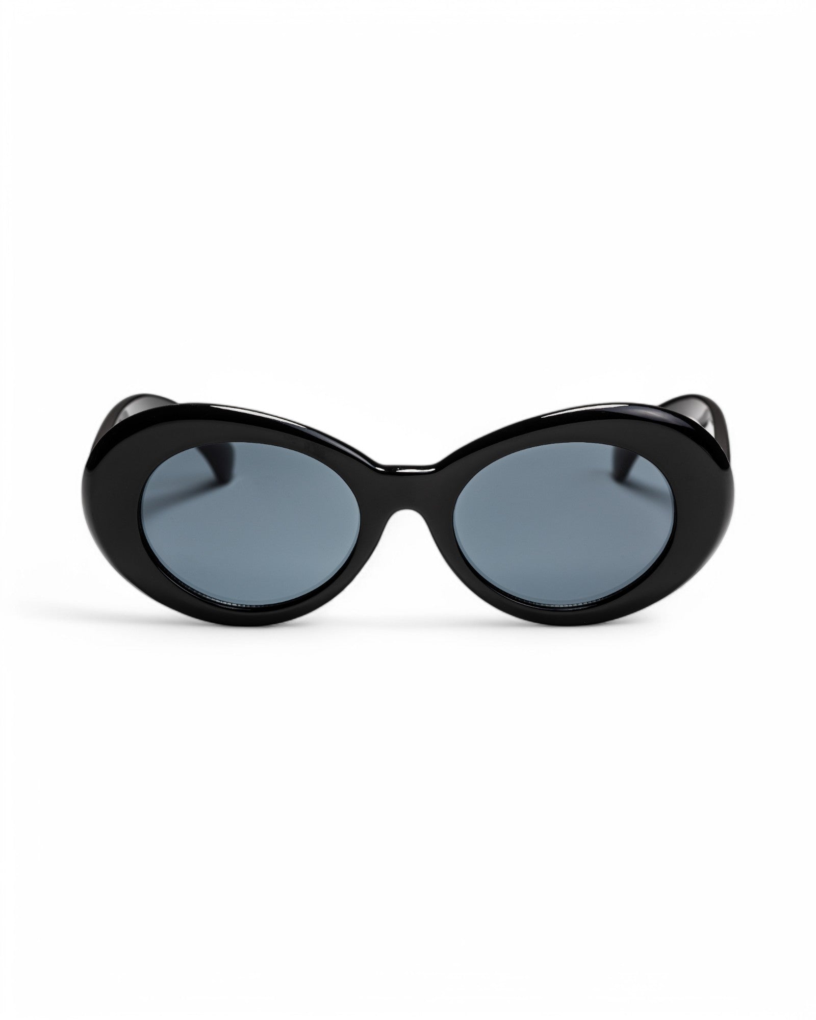 Frances blends bold curves with timeless lines—elevate any outfit effortlessly. All-black everything—frames and lenses dialled down for maximum impact.