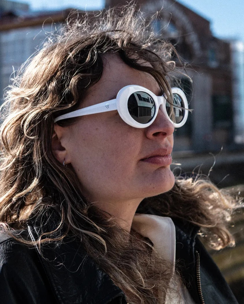 Frances blends bold curves with timeless lines—elevate any outfit effortlessly. White frames with black lenses made for standout days.