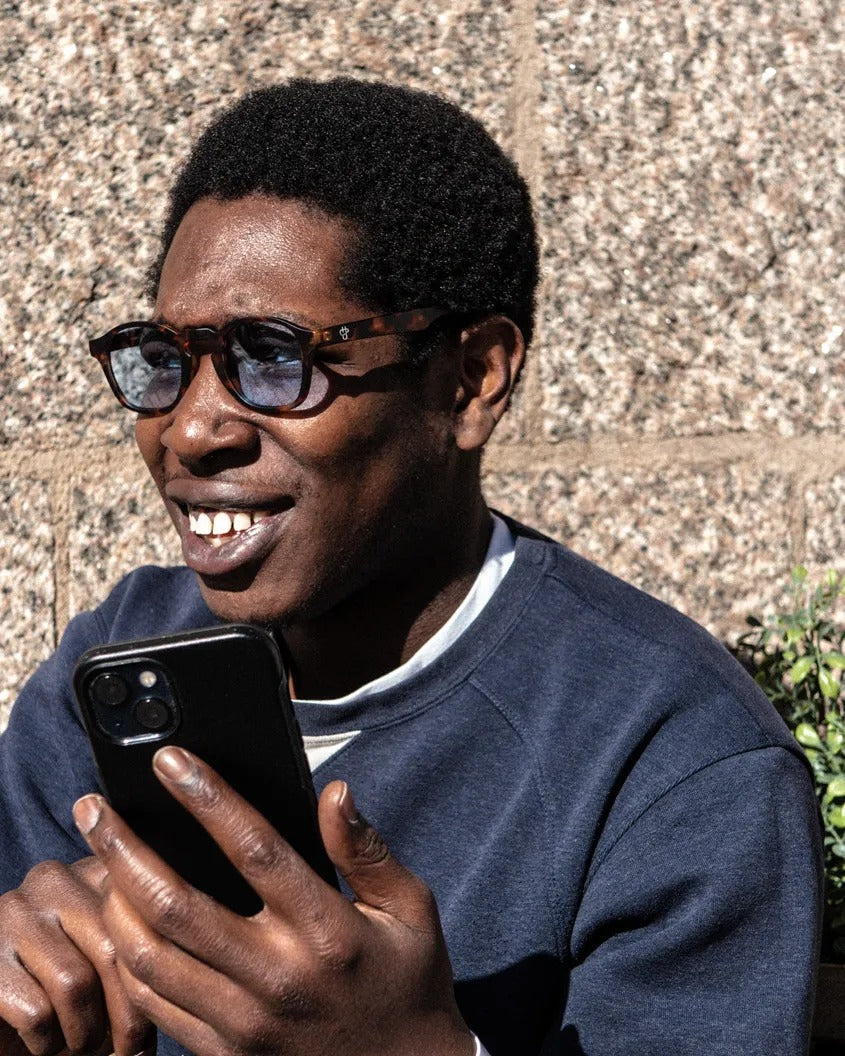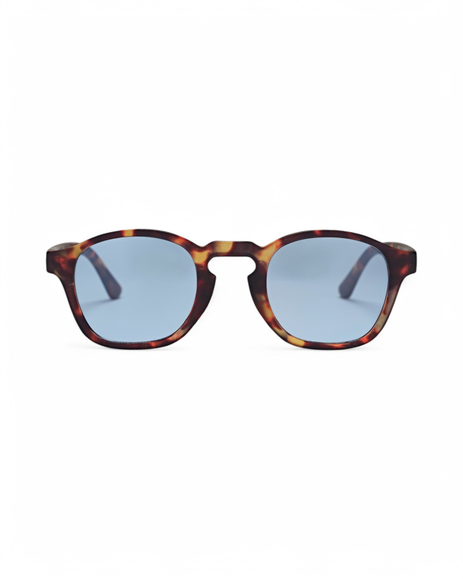 Gee brings oversized energy and clean style—built for confident days out. Turtle Brown frames with blue lenses made for standout days.