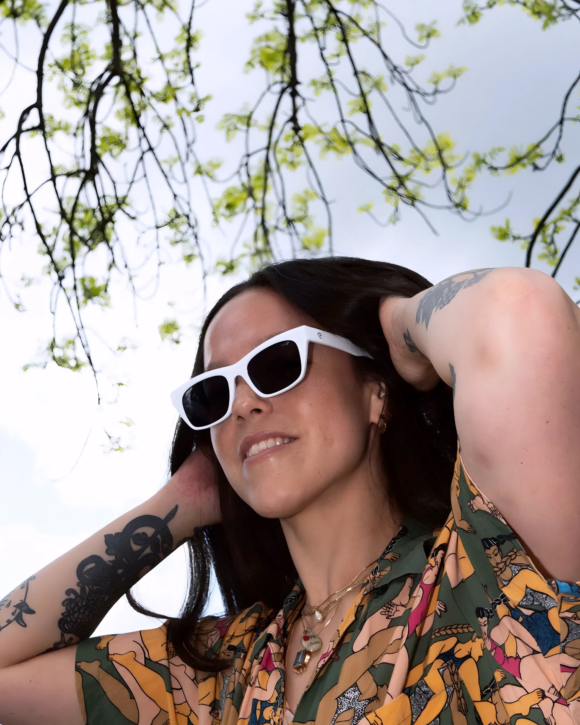 Guelas frames deliver bold angles and street-smart attitude in one slick package. White frames with black lenses made for standout days.