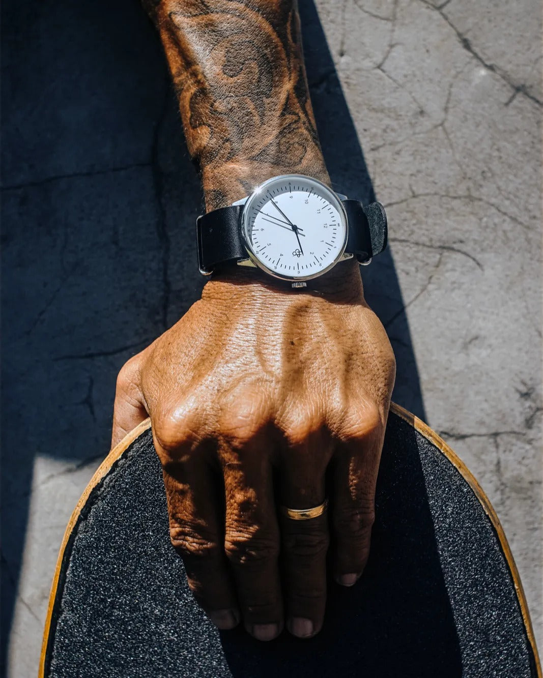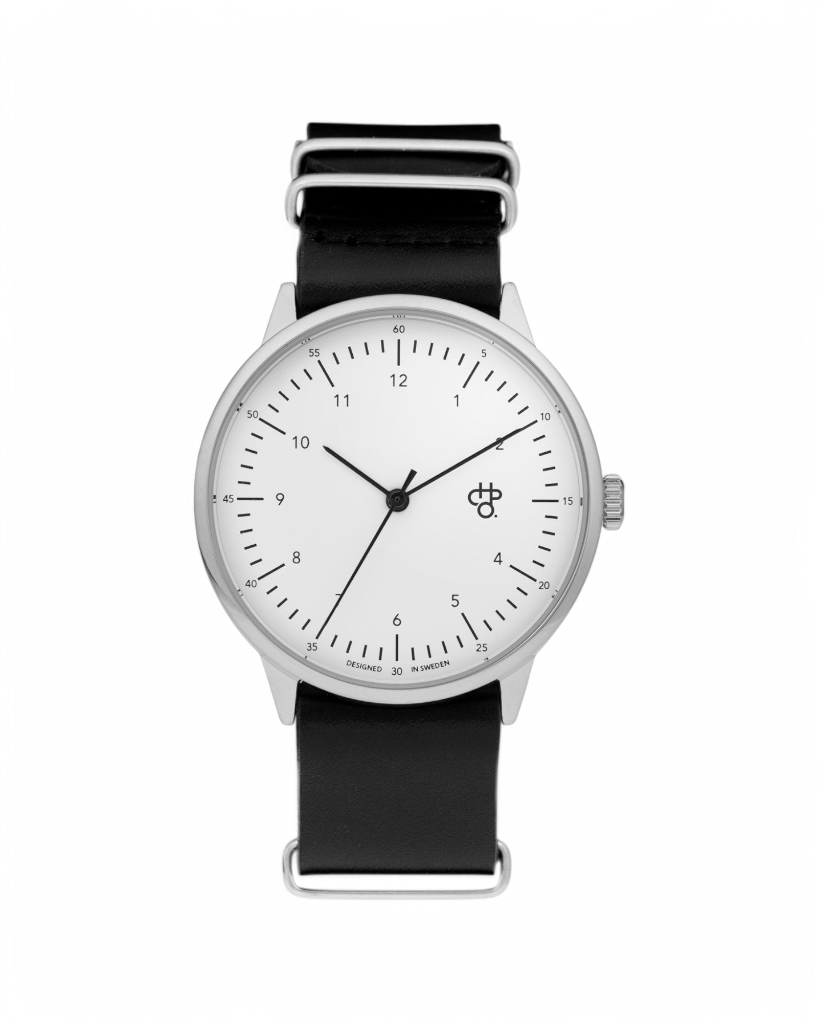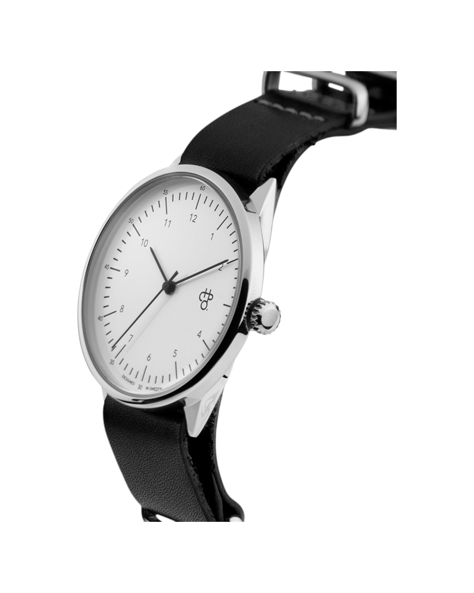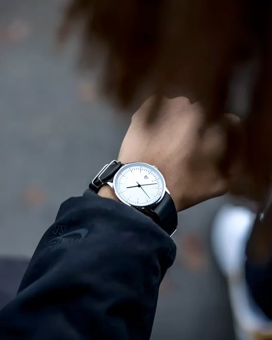 Harold pairs classic minimalism with quartz precision—clean lines and timeless cool. Silver case, white dial, and black vegan leather strap—classic colourways with sharp, minimal lines.