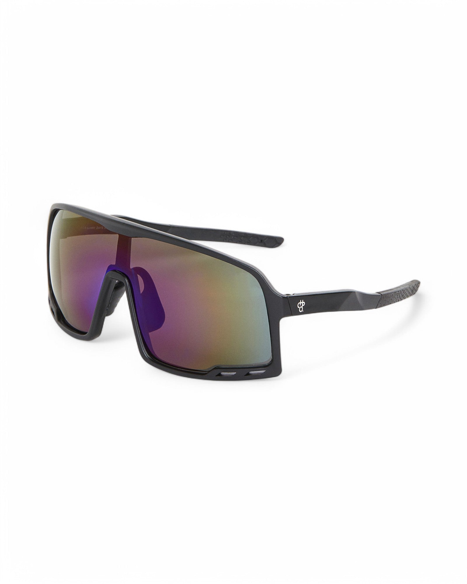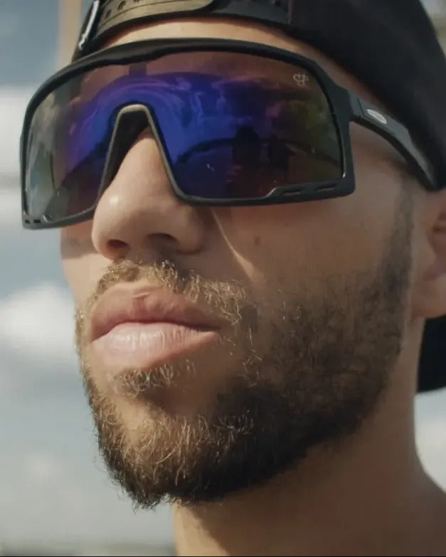 Henrik frames blend sharp lines and laid-back style—classic shades with modern cool. Black frames paired with blue mirror lenses—sharp lines, clean finish.