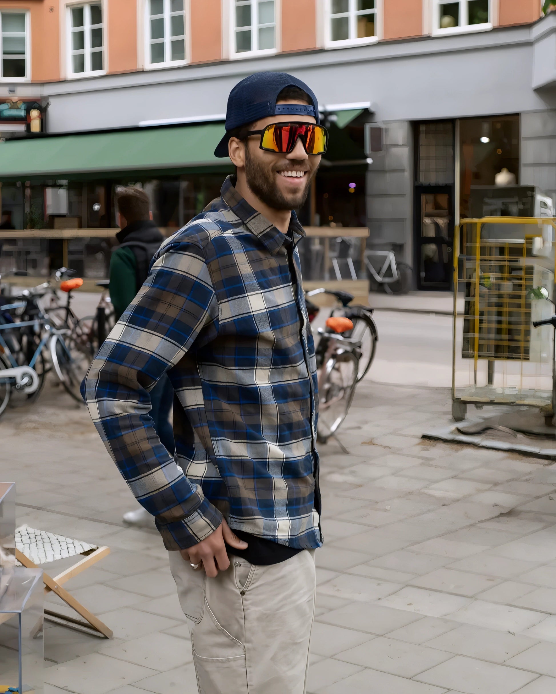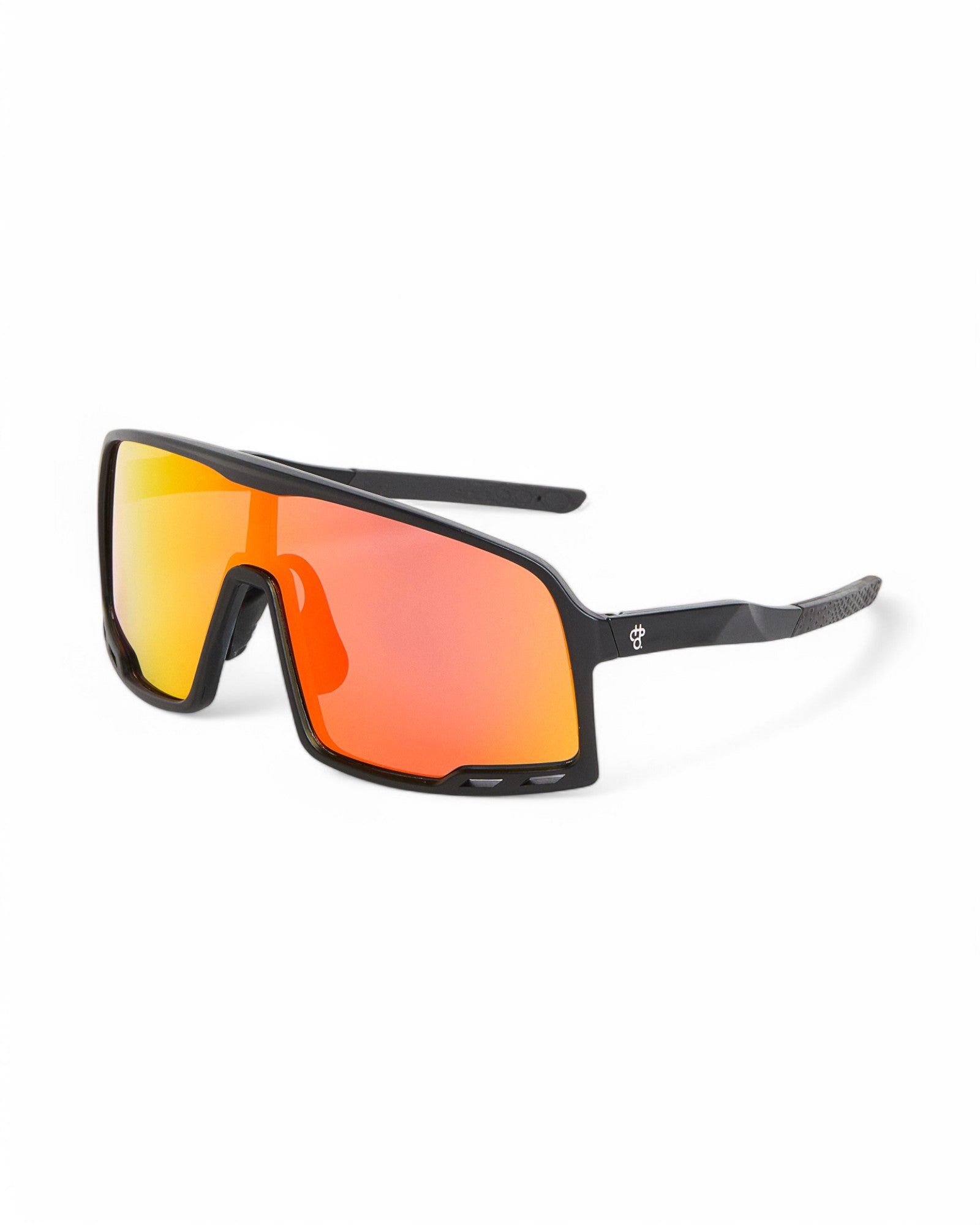 Henrik frames blend sharp lines and laid-back style—classic shades with modern cool. Black frames paired with red mirror lenses—sharp lines, clean finish.