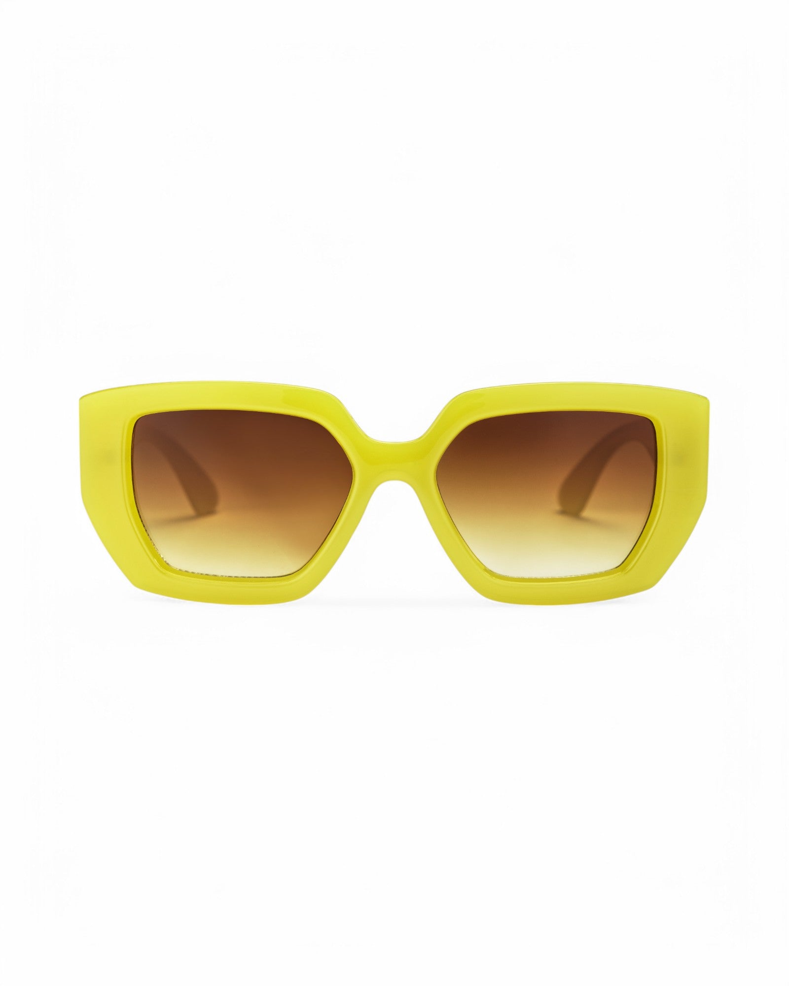 Hong Kong frames bring big city energy—bold design with a sleek, urban edge. Lemon frames matched with brown lenses for bold, urban edge.