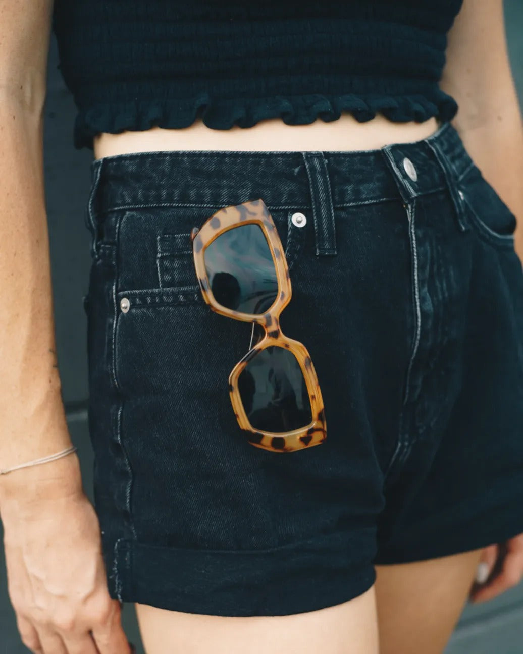 Hong Kong frames bring big city energy—bold design with a sleek, urban edge. Leopard frames matched with black lenses for bold, urban edge.