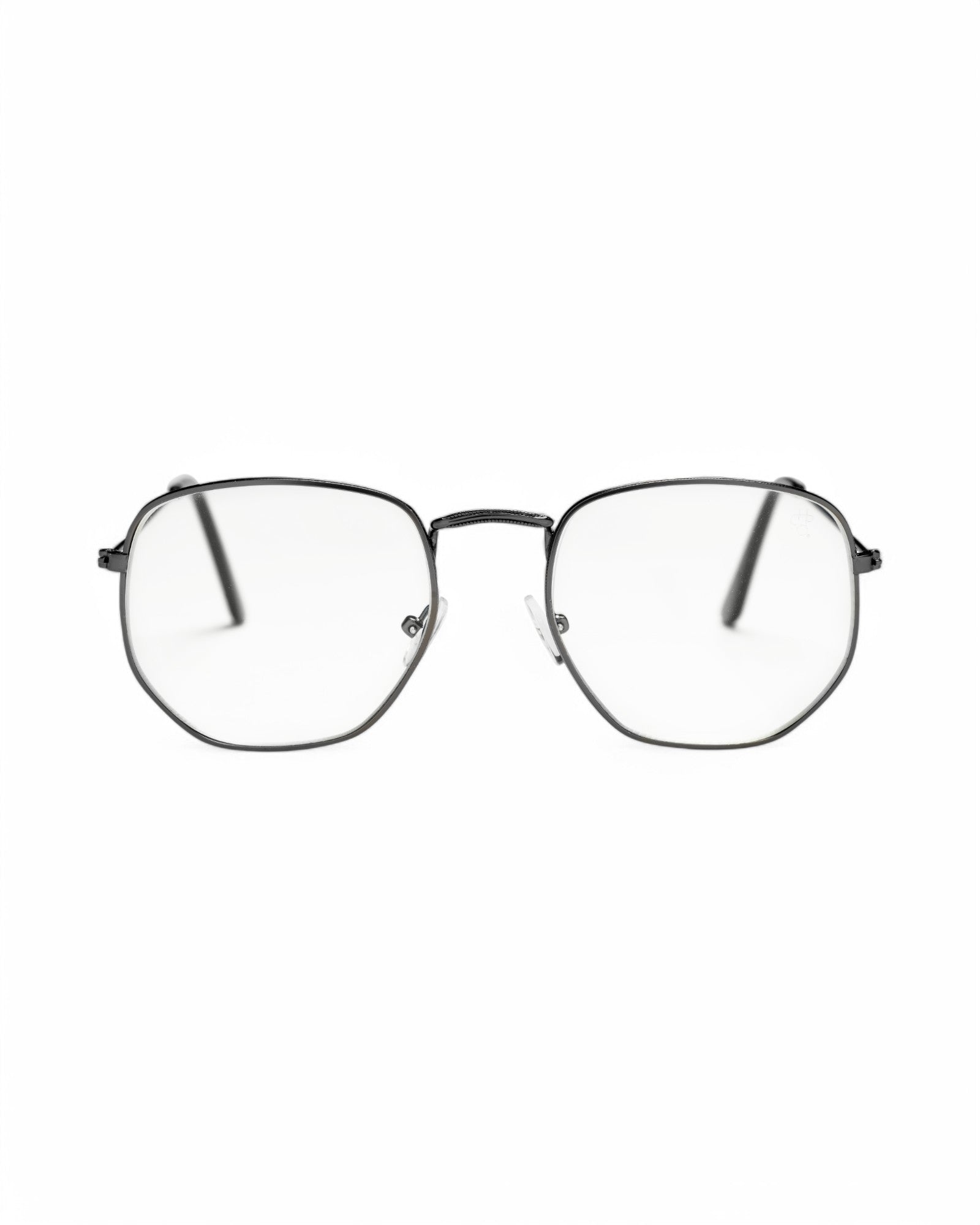 Ian blue light glasses cut glare, ease eye strain, and keep you scrolling sharp. Black frames with transparent lenses—simple lines, standout style.