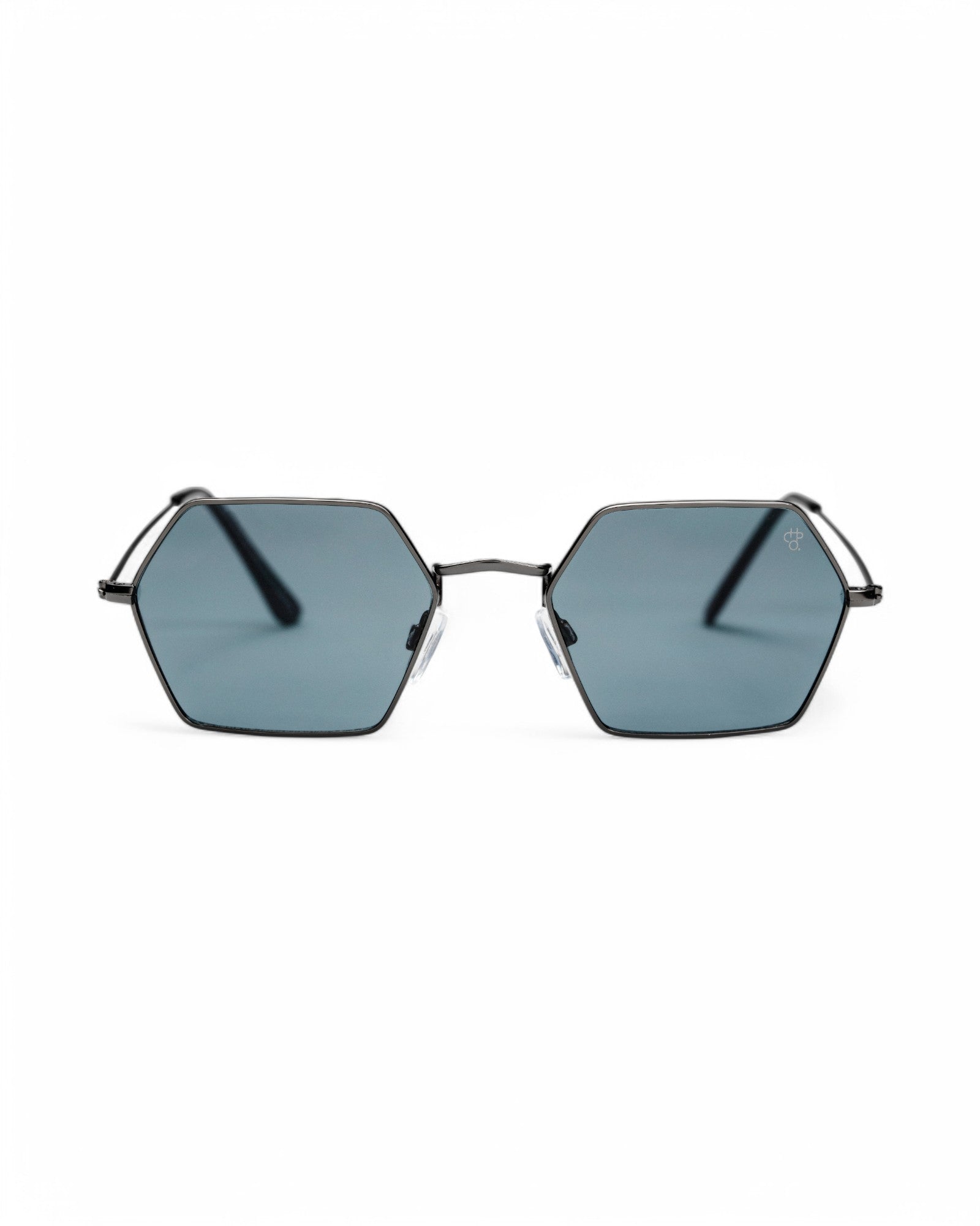 Jason’s oversized shape dials up the attitude—bold shades built to stand out. Oversized Gunmetal frames clashed with black lenses—built to stand out.