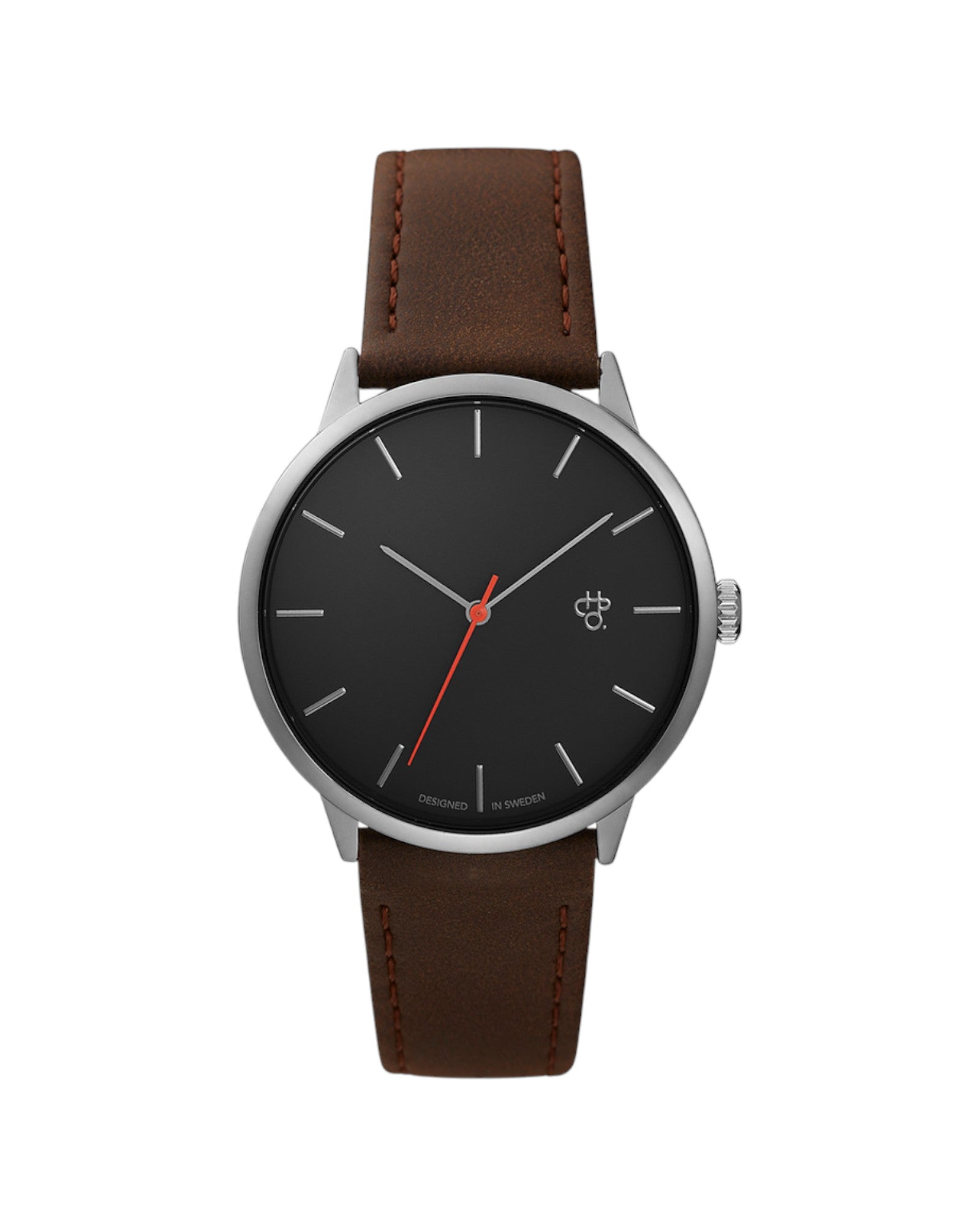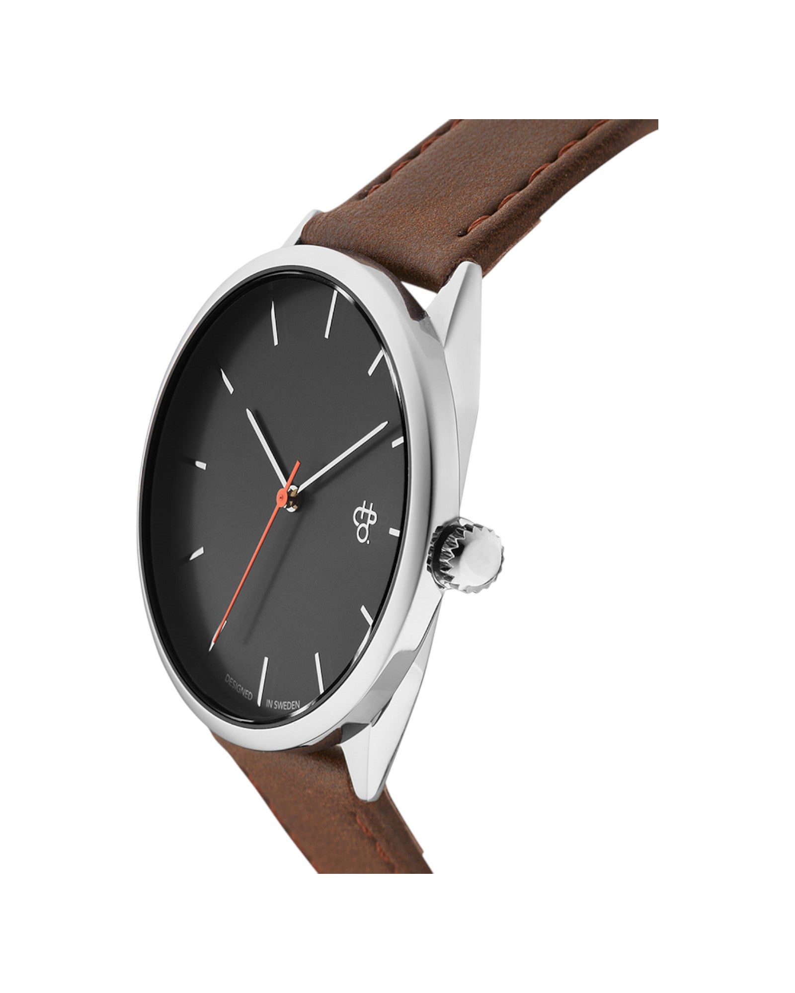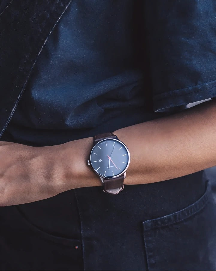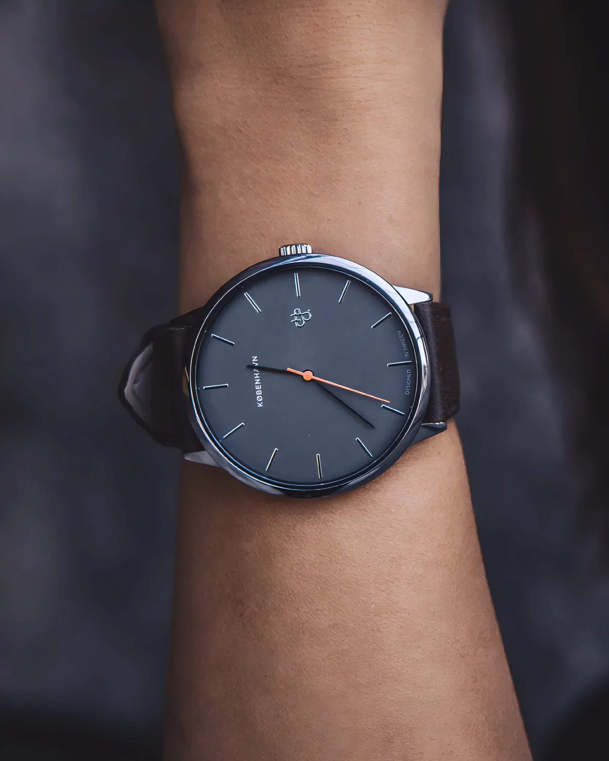 Khorshid København channels sharp, effortless energy—modern minimalism powered by quartz. Silver case blended with a gunmetal dial and brown vegan leather strap—clean contrasts and bold character.