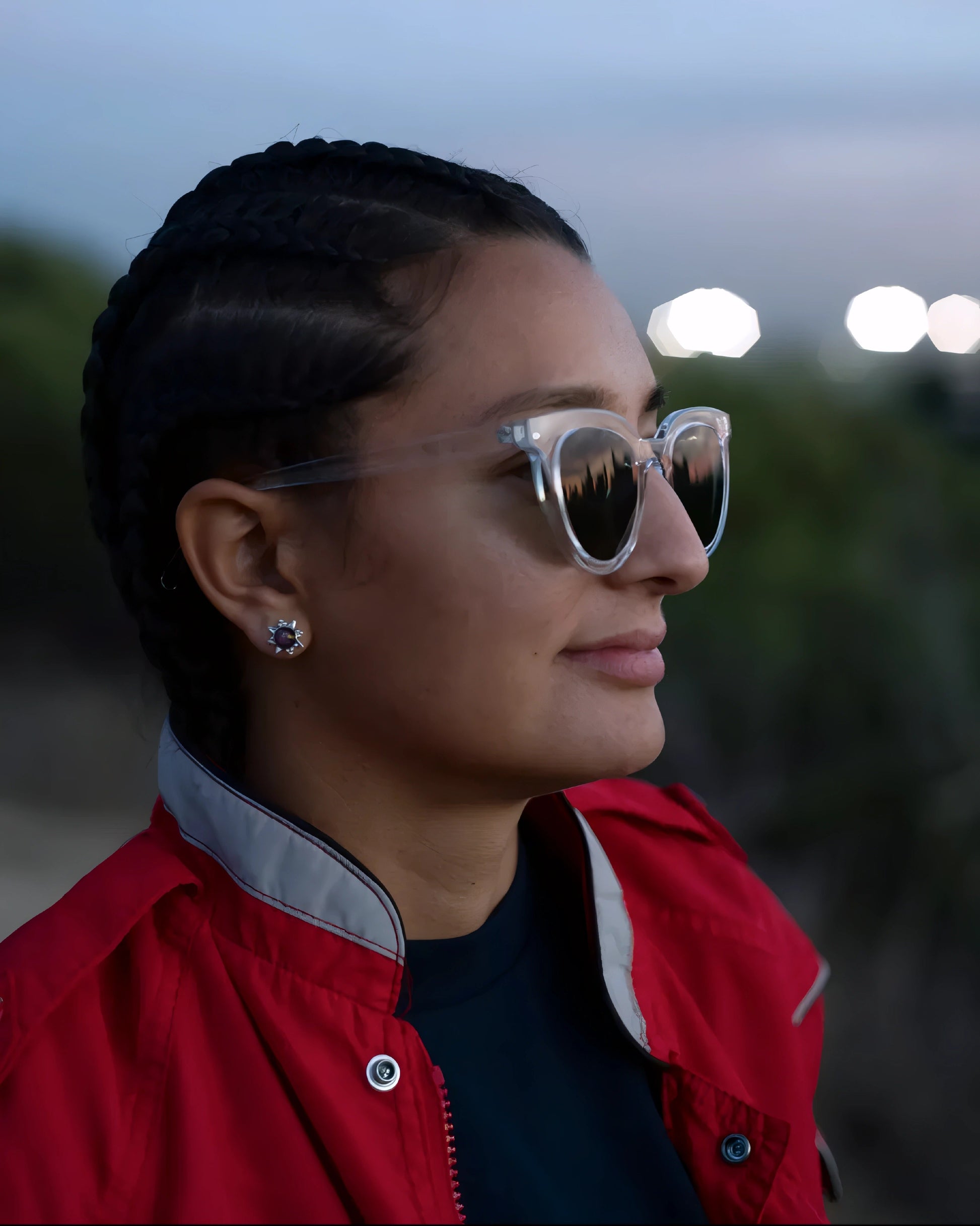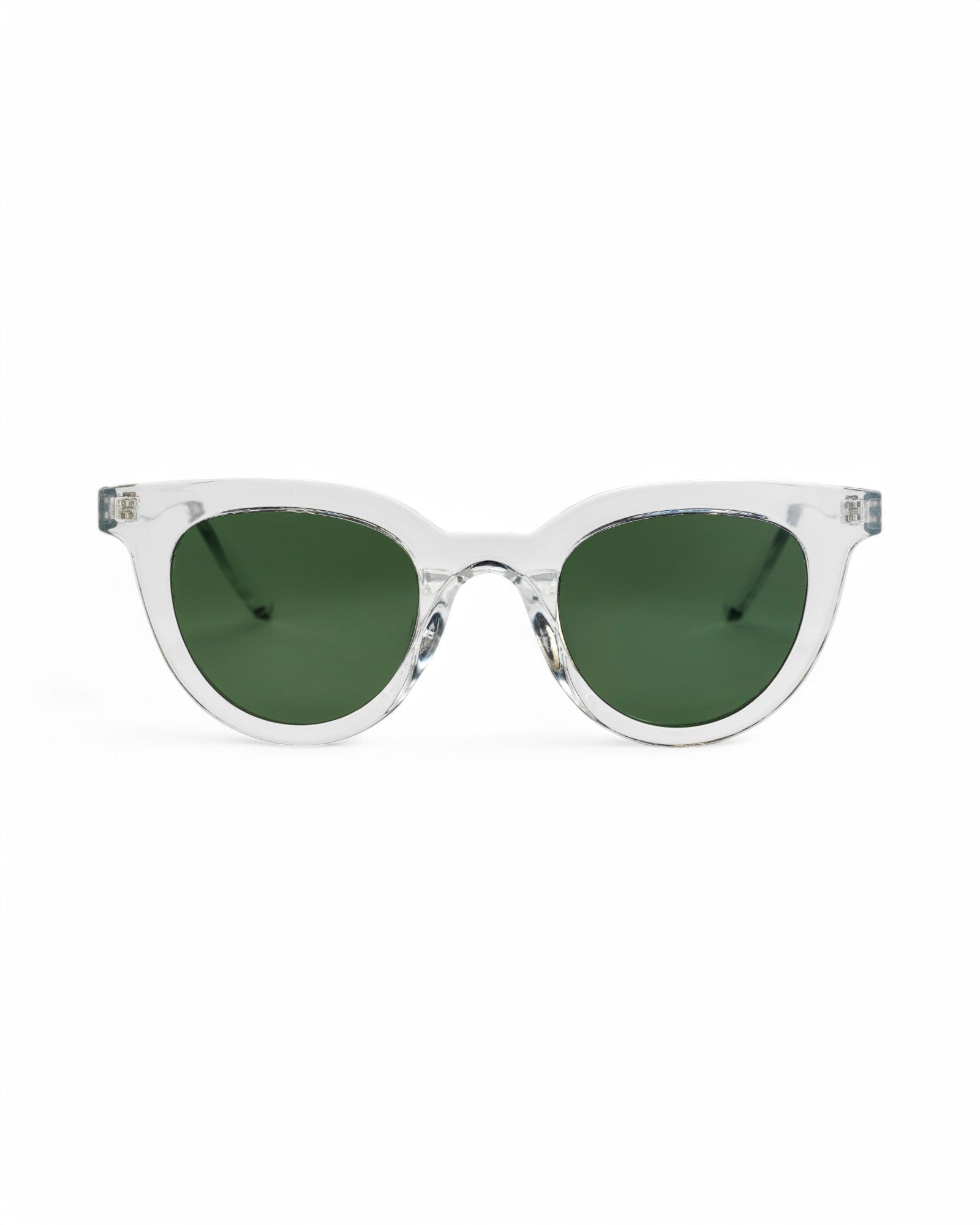 Långholmen frames nod to Stockholm style—clean lines with a hint of street cool. Transparent frames teamed with Green lenses—Stockholm style done right.