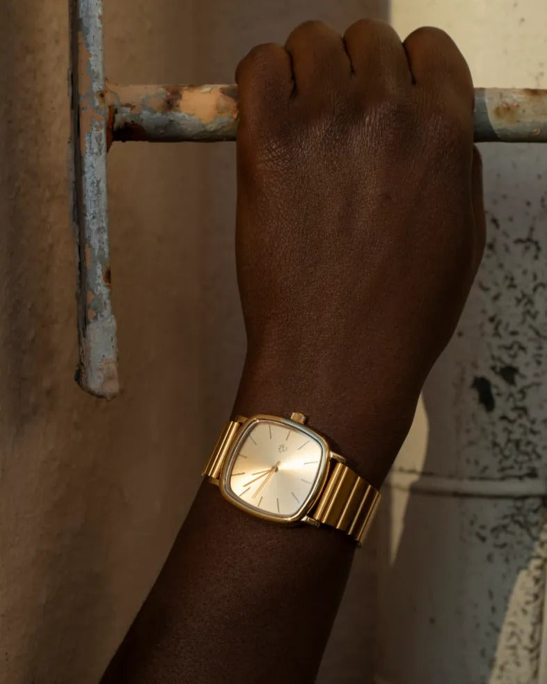 Lara Gold blends sleek curves with sharp Scandinavian minimalism—timeless, effortless, always on point. Gold case, gold dial, and gold metal strap—refined tones, effortless finish.