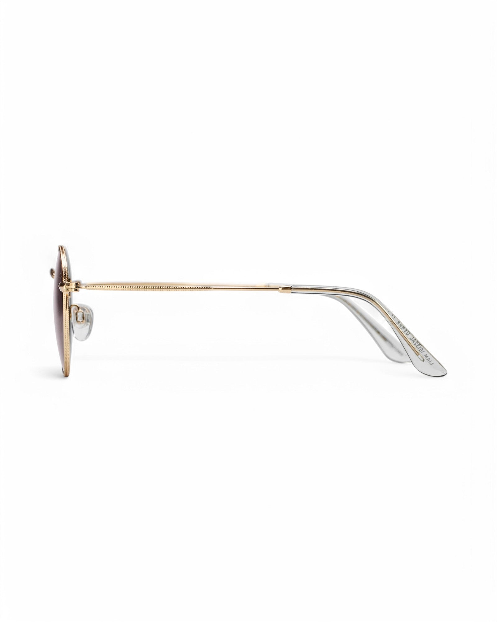Liam shades bring laid-back confidence—bold frames with everyday edge. Gold frames combined with Pink Mirror lenses—clean lines, classic appeal.