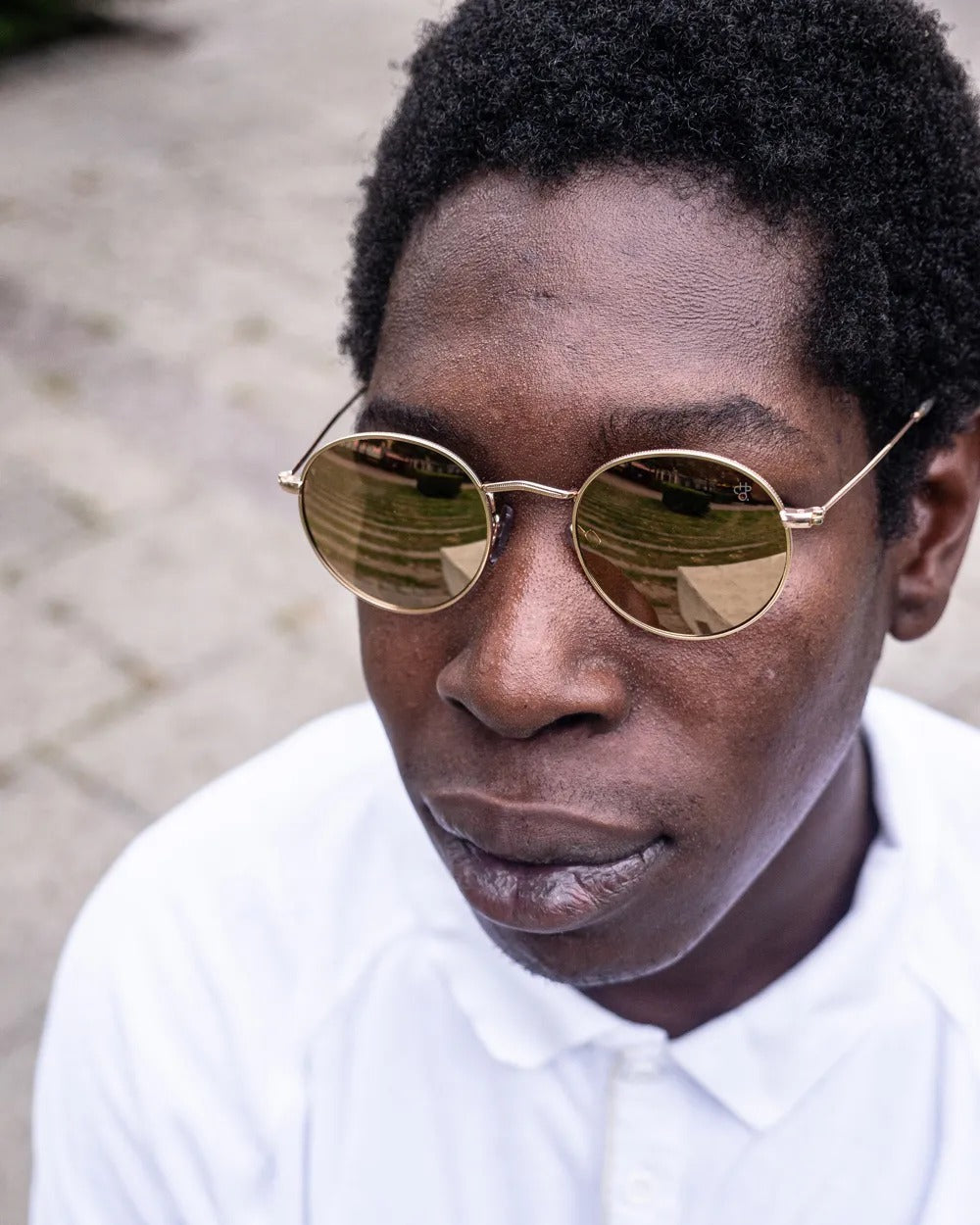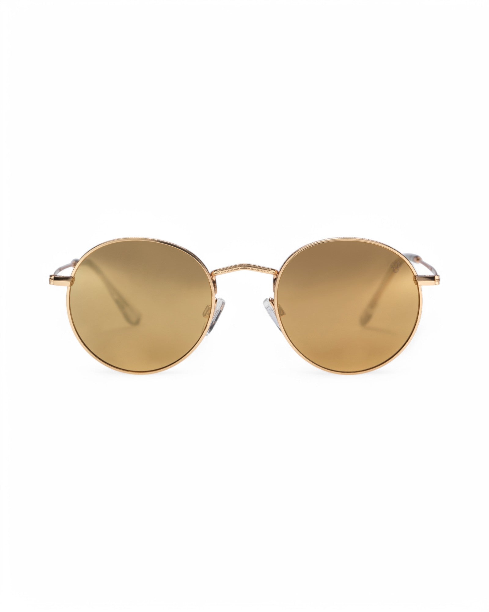 Liam shades bring laid-back confidence—bold frames with everyday edge. Gold frames combined with Gold lenses—clean lines, classic appeal.