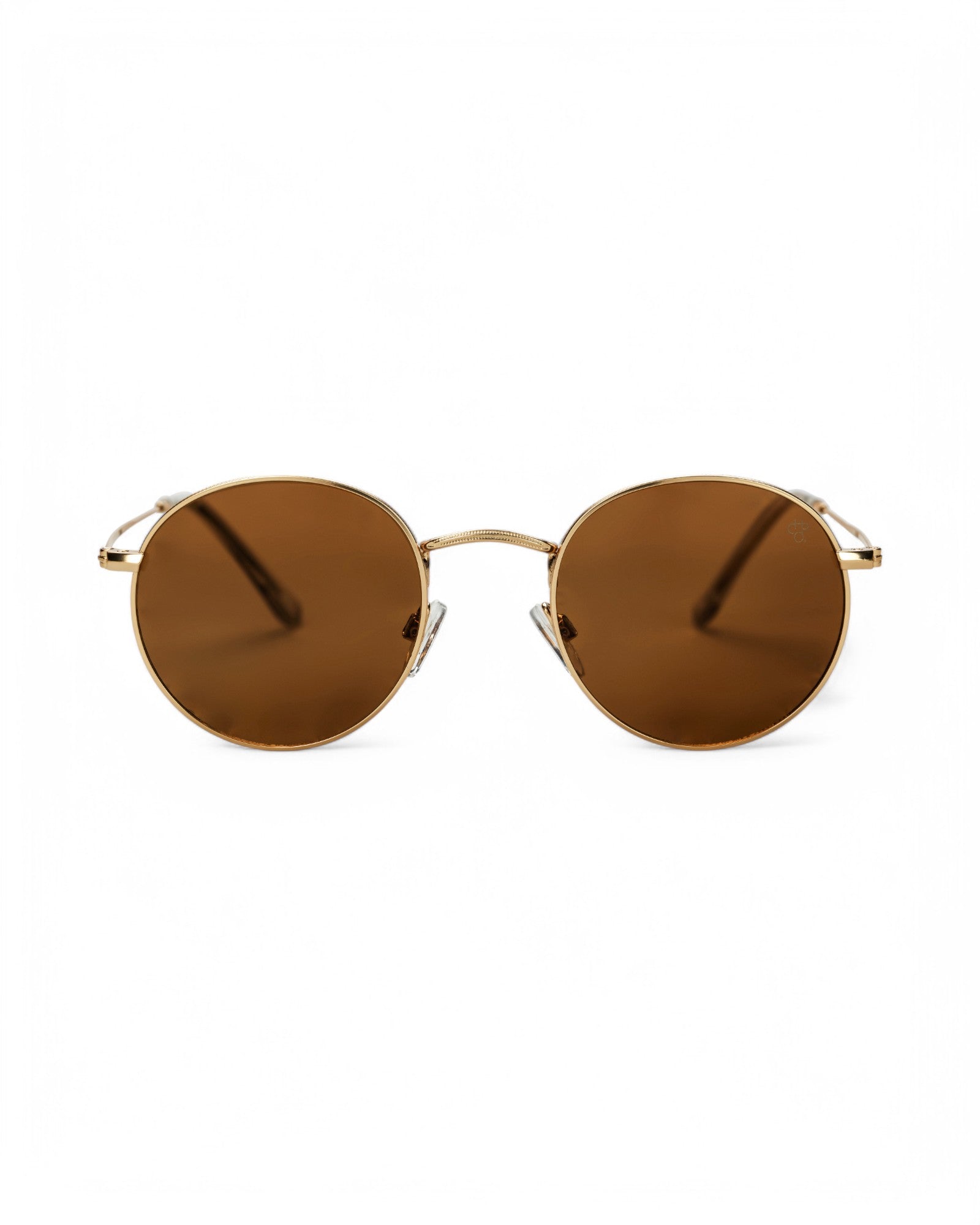 Liam shades bring laid-back confidence—bold frames with everyday edge. Gold frames combined with Brown lenses—clean lines, classic appeal.