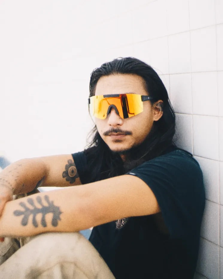 Luca keeps it cool and understated—smooth lines built for timeless appeal. Black frames and Red Mirror lenses—smooth lines, timeless finish.