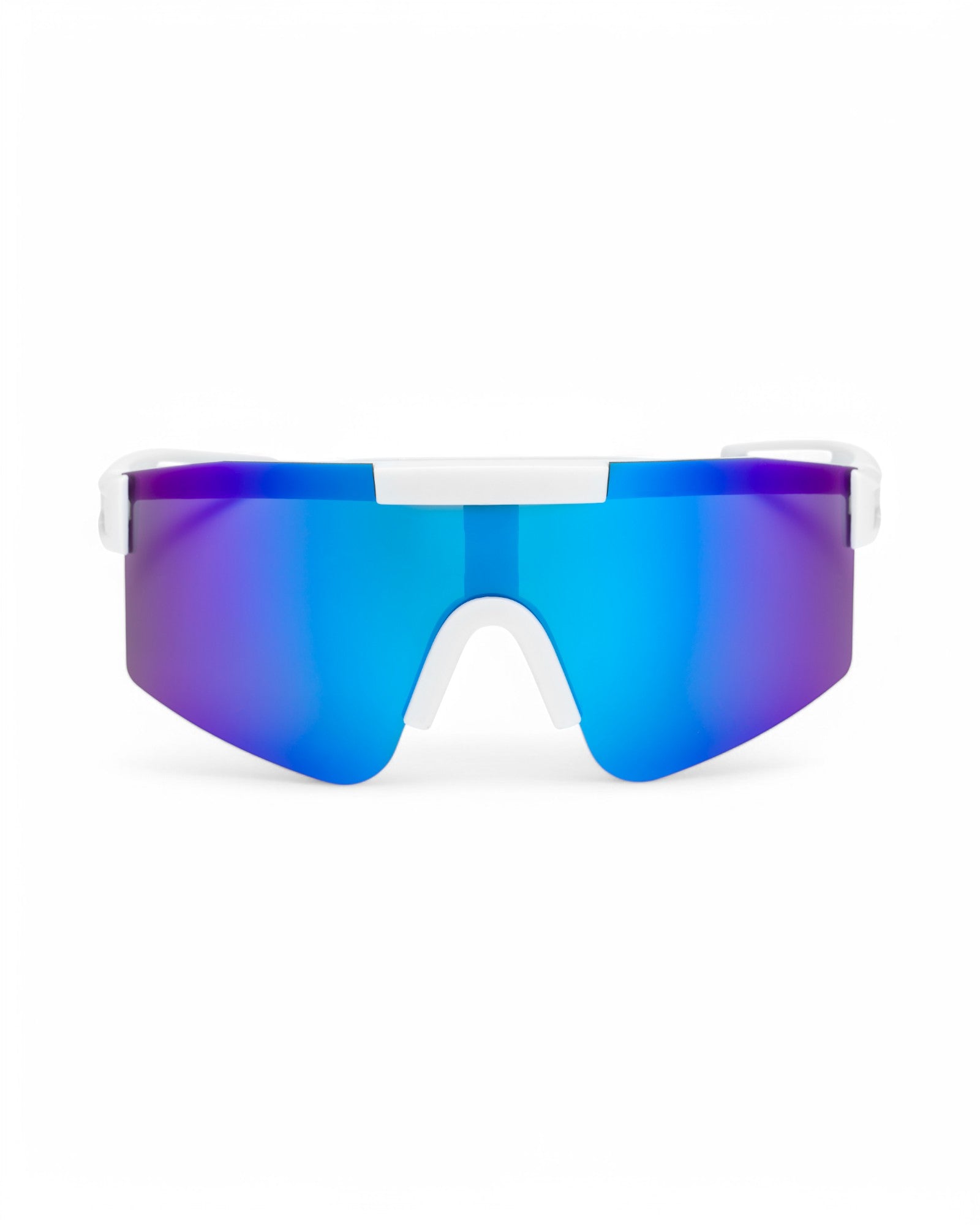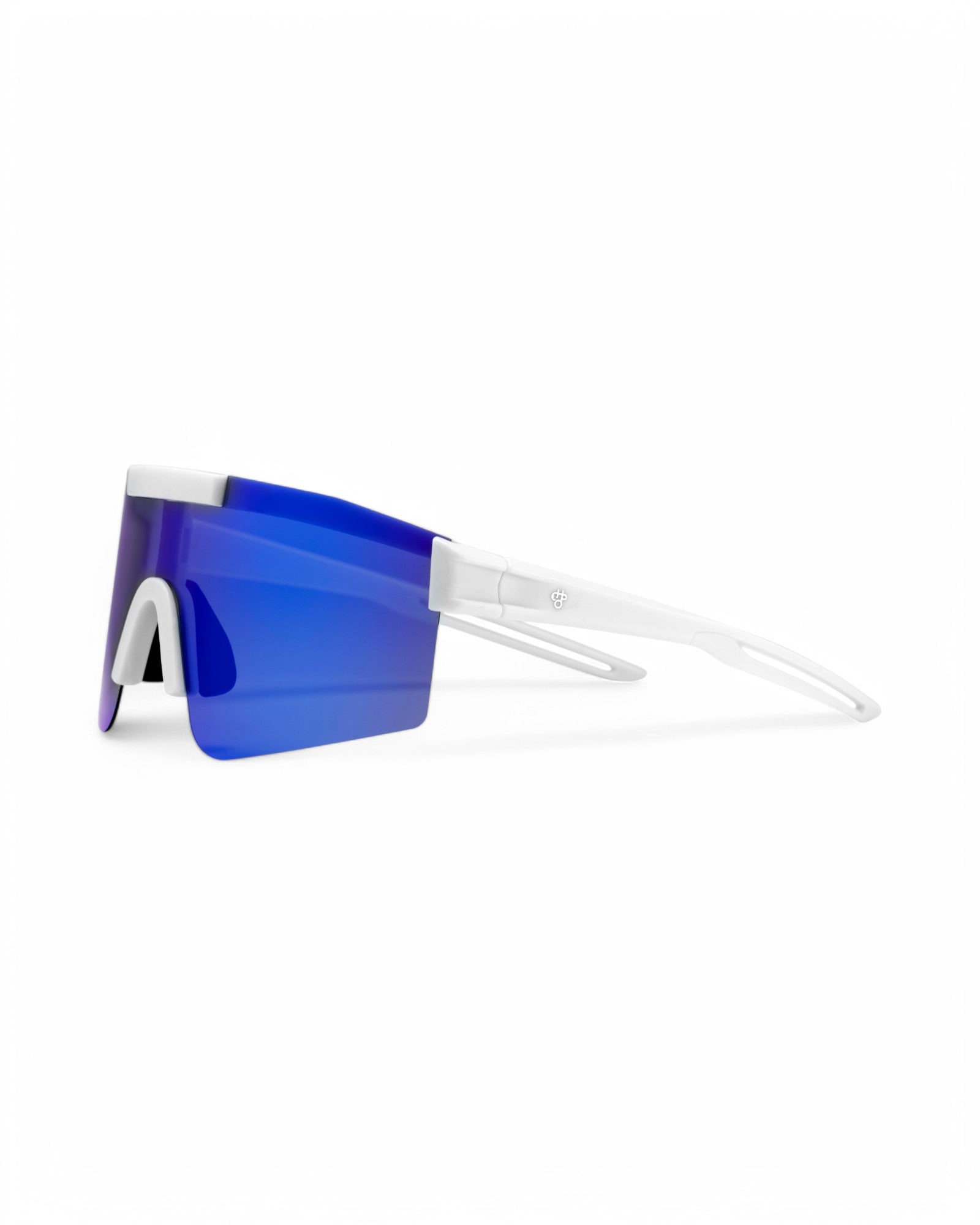 Luca keeps it cool and understated—smooth lines built for timeless appeal. White frames and Blue Mirror lenses—smooth lines, timeless finish.