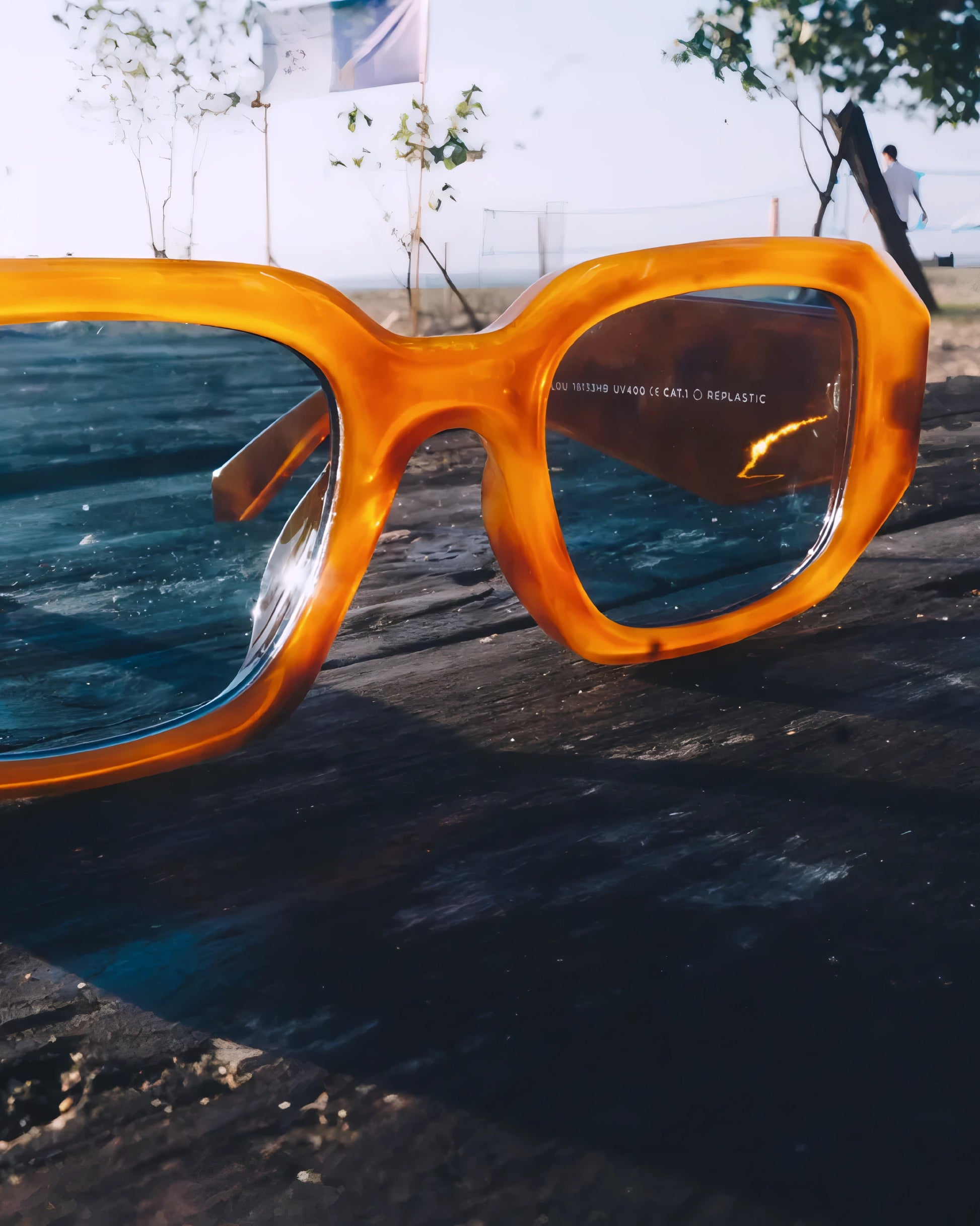 Reed frames mix retro charm with modern simplicity—cool and classic in every way. Turtle Amber frames blended with Black lenses—retro vibes, modern finish.