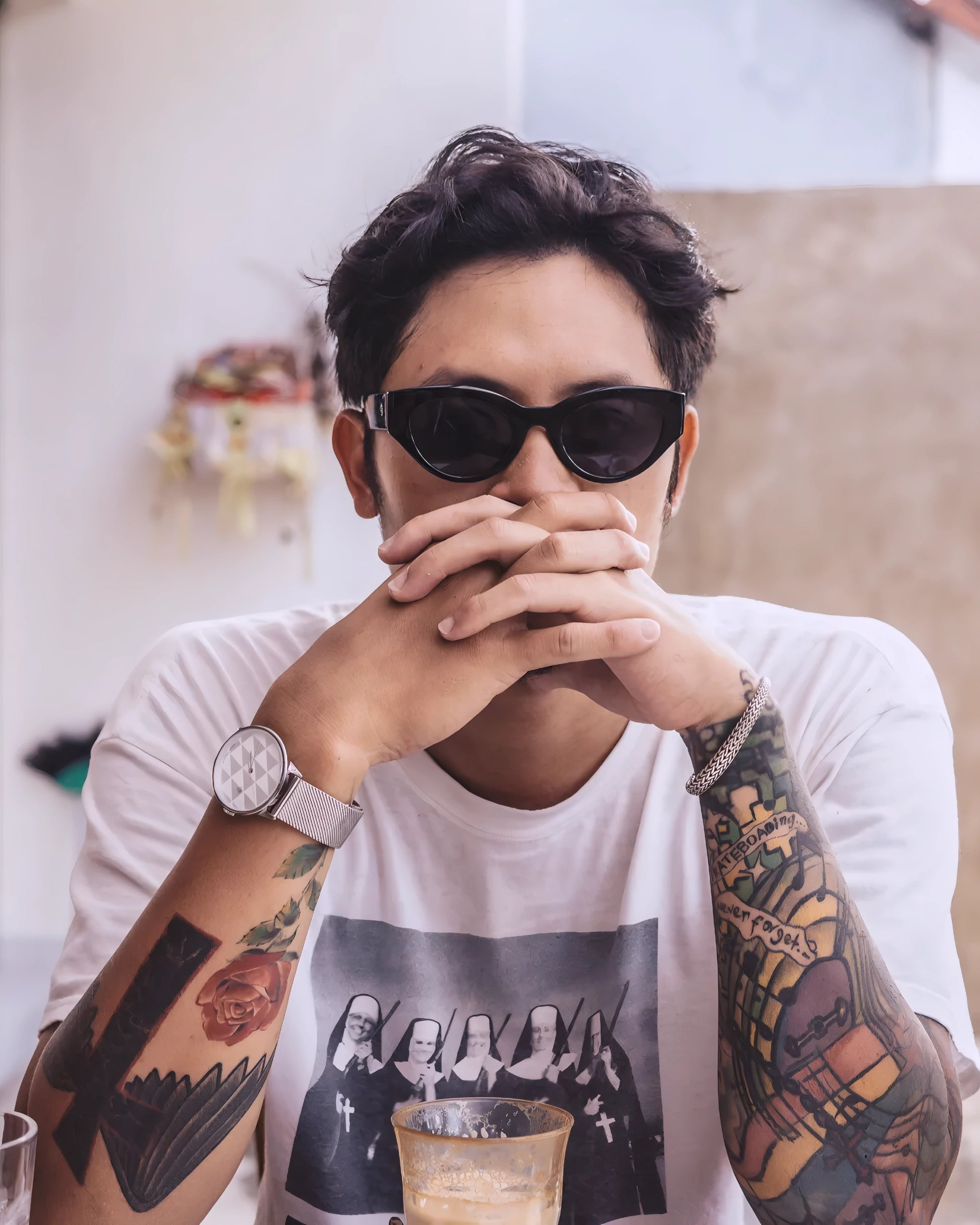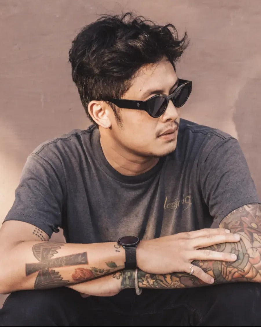 Robyn frames blend bold angles and clean curves—fresh style, all day long. Black frames combined with Black lenses—fresh tones, bold attitude.