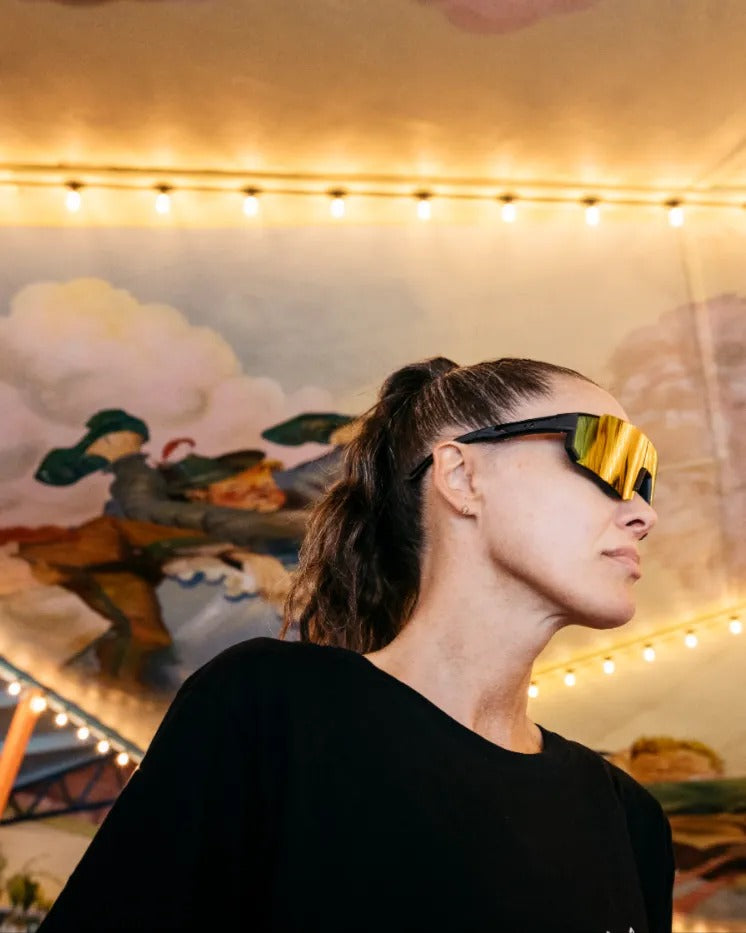 Siri frames blend classic lines and bold presence—effortless cool, dialled up. Black frames with Red Mirror lenses—bold lines, clean simplicity.