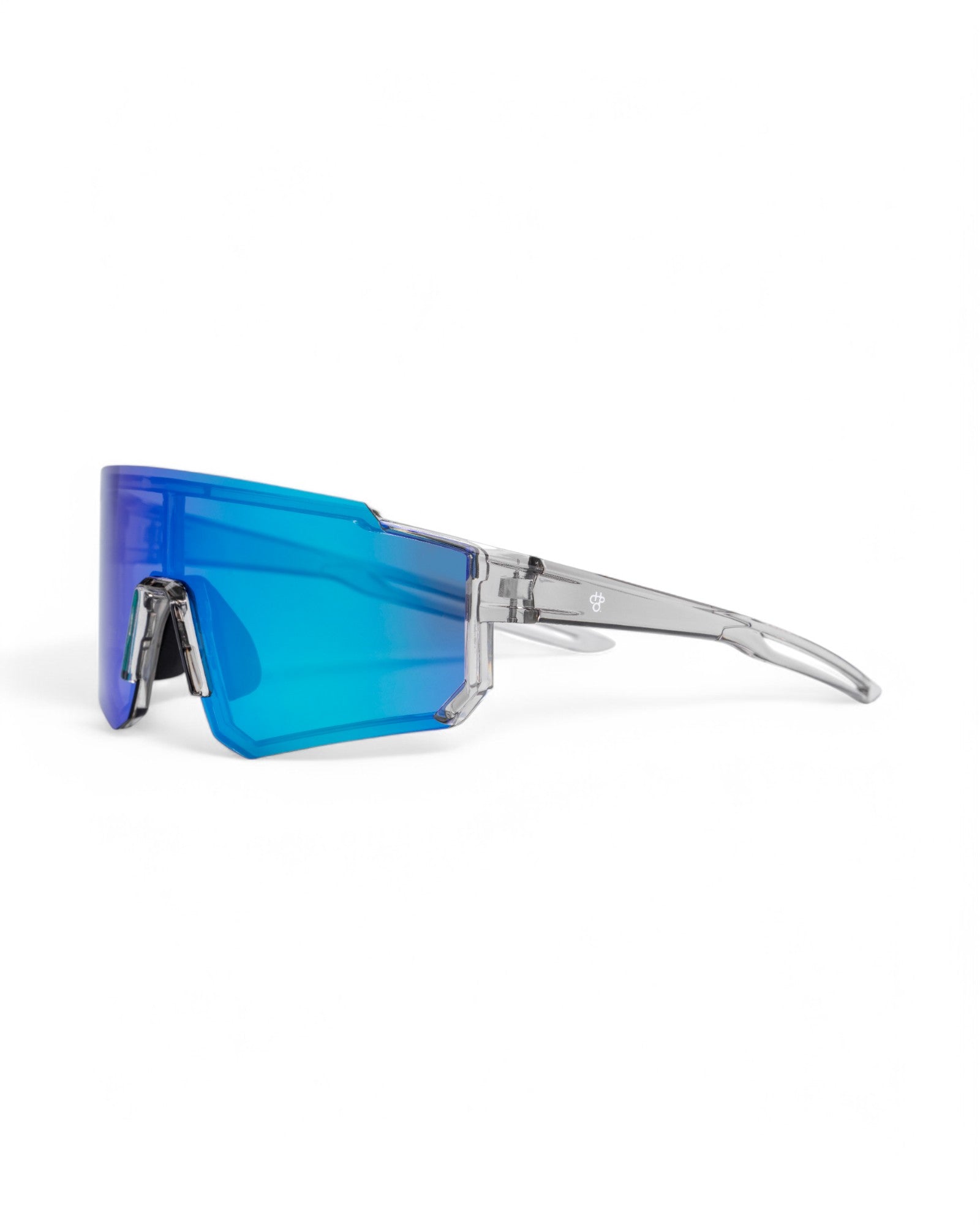 Siri frames blend classic lines and bold presence—effortless cool, dialled up. Transparent Grey frames with Rainbow Mirror lenses—bold lines, clean simplicity.