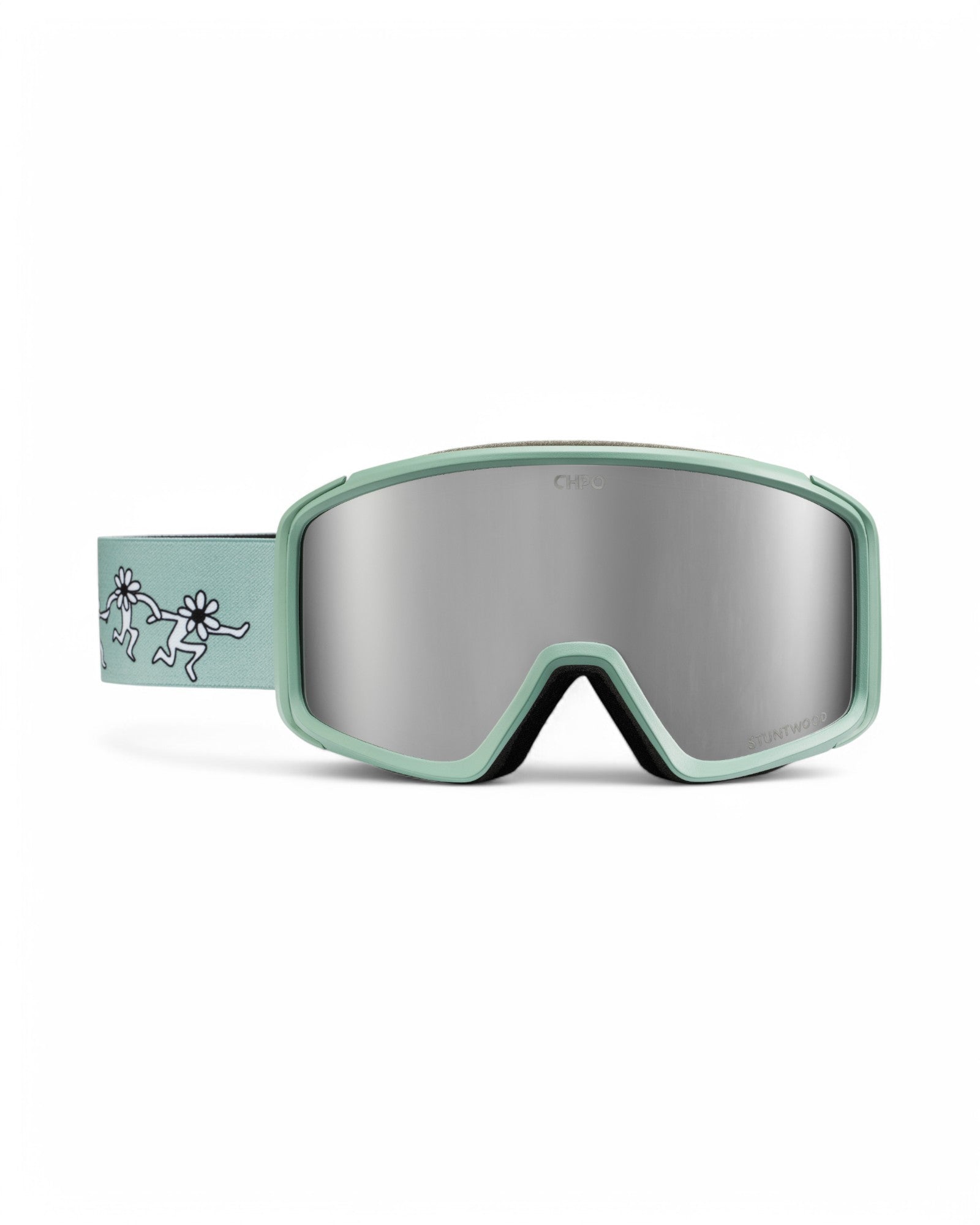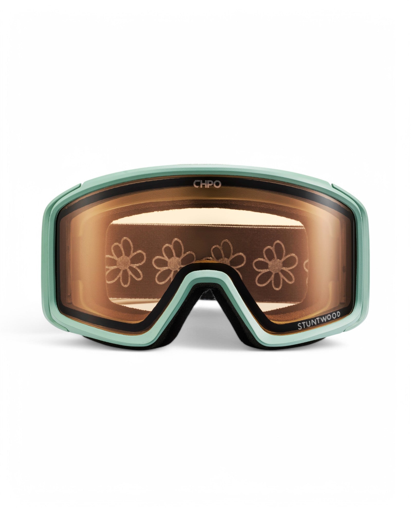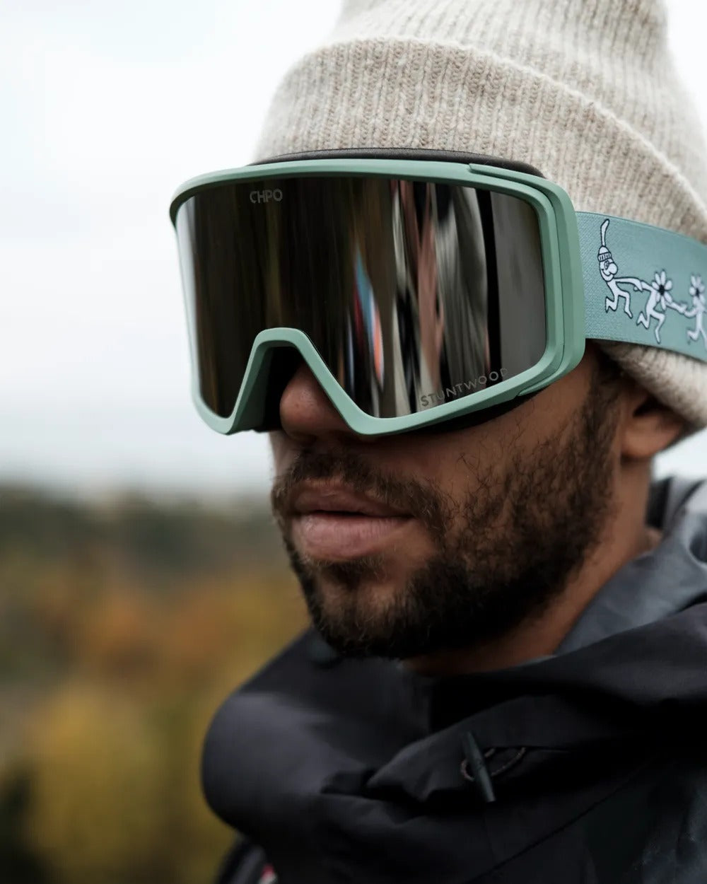 Stuntwood snow goggles bring bold lines and clear vision—built for the mountain. Mint frames and Silver Mirror lenses—crisp visibility, bold mountain vibe.