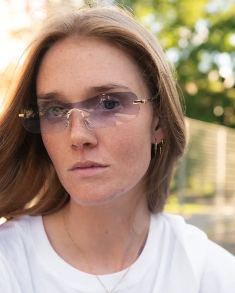 Tempelhofer frames channel Berlin attitude—strong lines, street-ready cool. Gold frames with Blue lenses—strong shape, street edge.