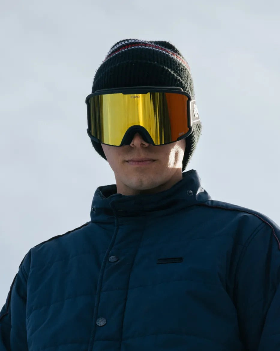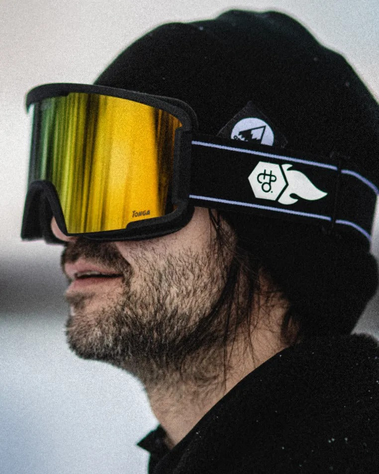 Tonga snow goggles keep your vision sharp and style bold—built for every slope mission. Black frames combined with Gold lenses—crisp views, slope ready.
