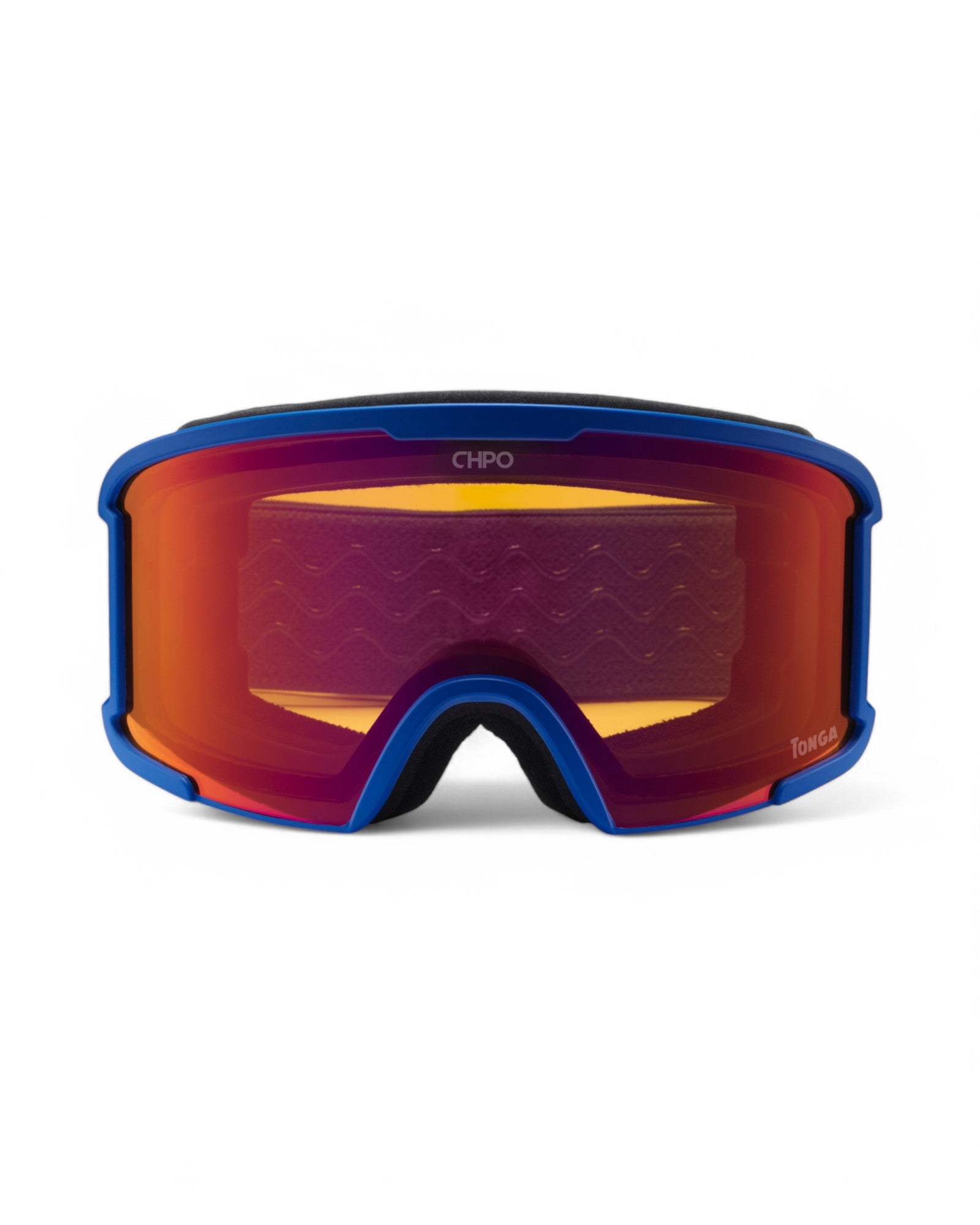 Tonga snow goggles keep your vision sharp and style bold—built for every slope mission. Blue frames combined with Blue Mirror lenses—crisp views, slope ready.