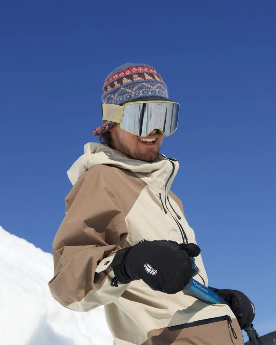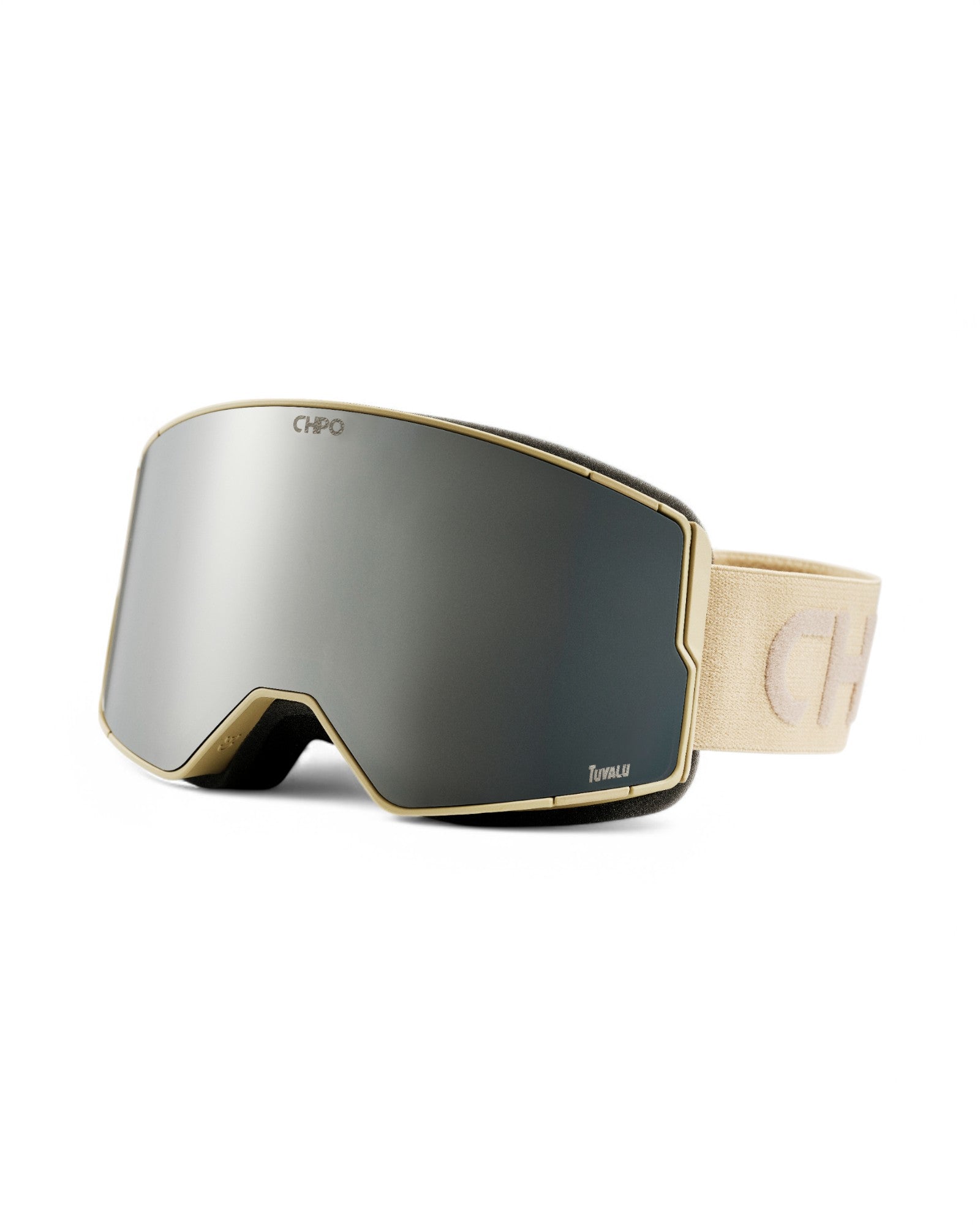 Tuvalu snow goggles bring bold visibility and sharp mountain style—ready for any ride. Sand frames and Silver Mirror lenses—bold vision, mountain ready.