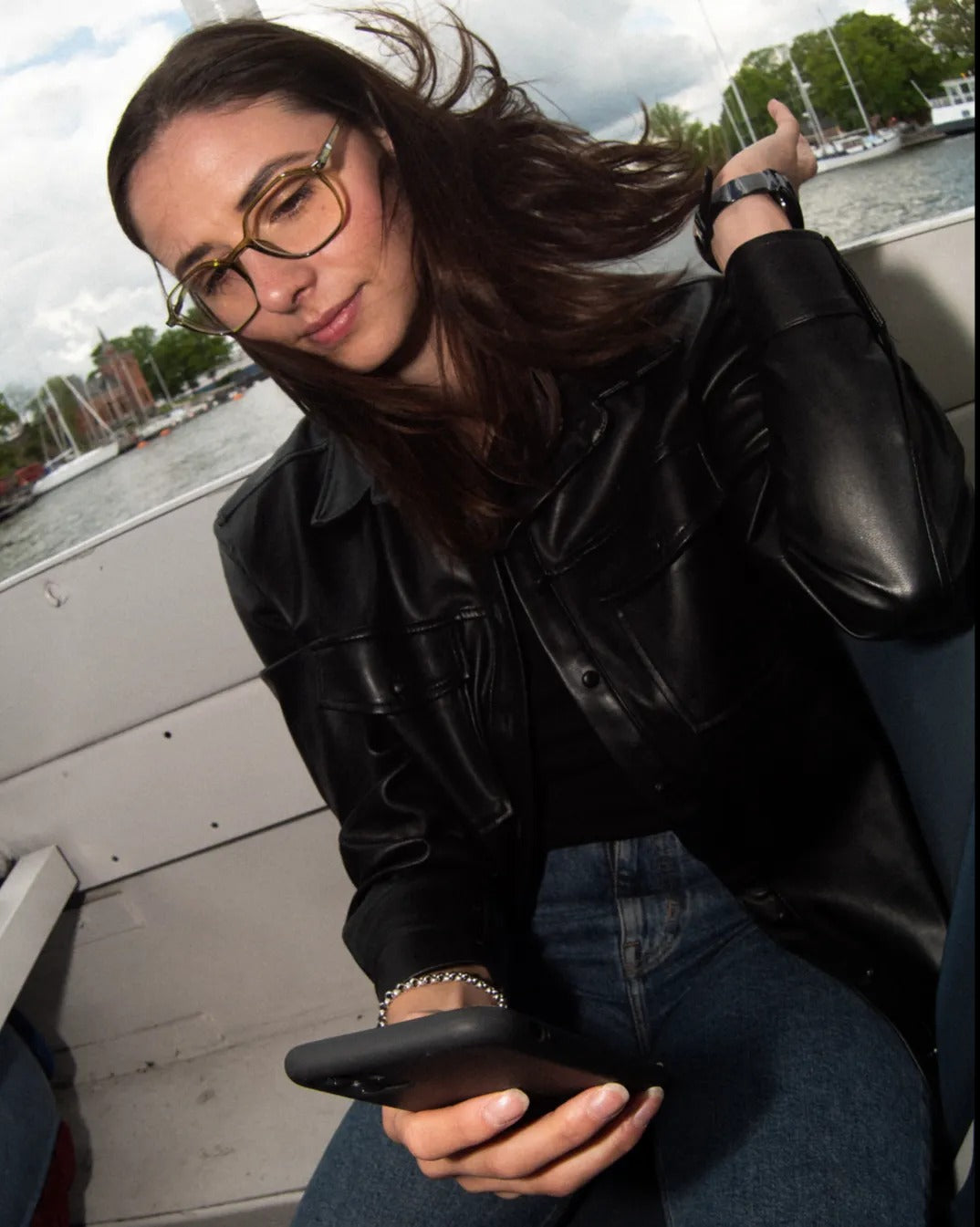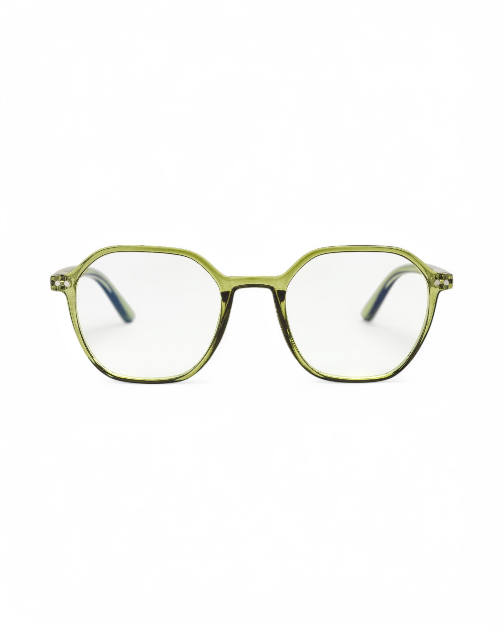Umeå blue light glasses cut glare, ease eye strain, and sharpen your screen time. Forest Green frames and Transparent lenses—clean tones, screen-time sharp.