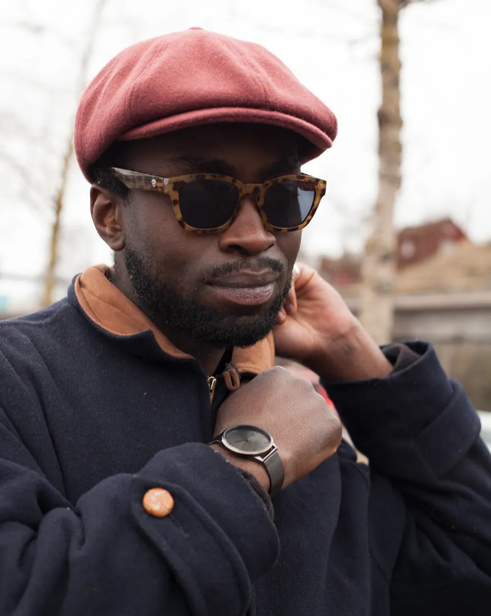 Vik frames bring clean design and soft curves—laid-back, bold, always fresh. Leopard frames teamed with Black lenses—soft curves, sharp look.