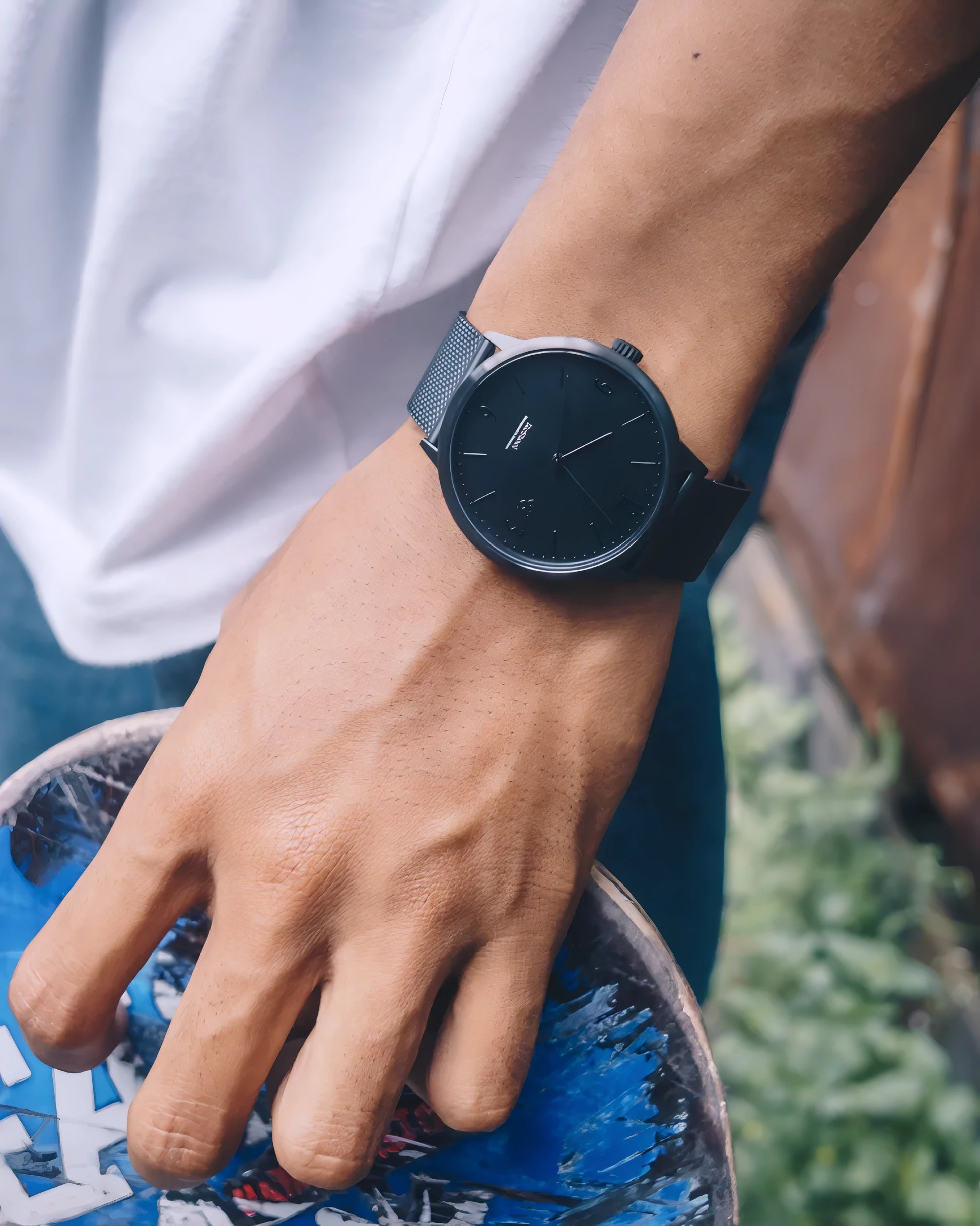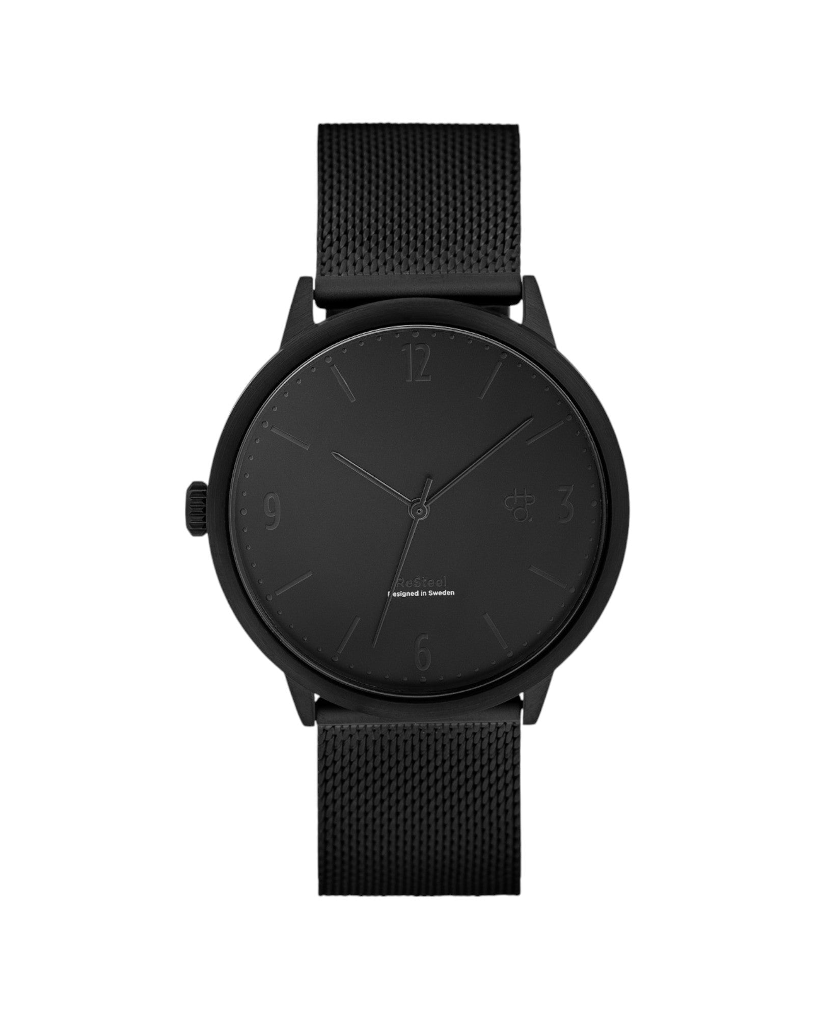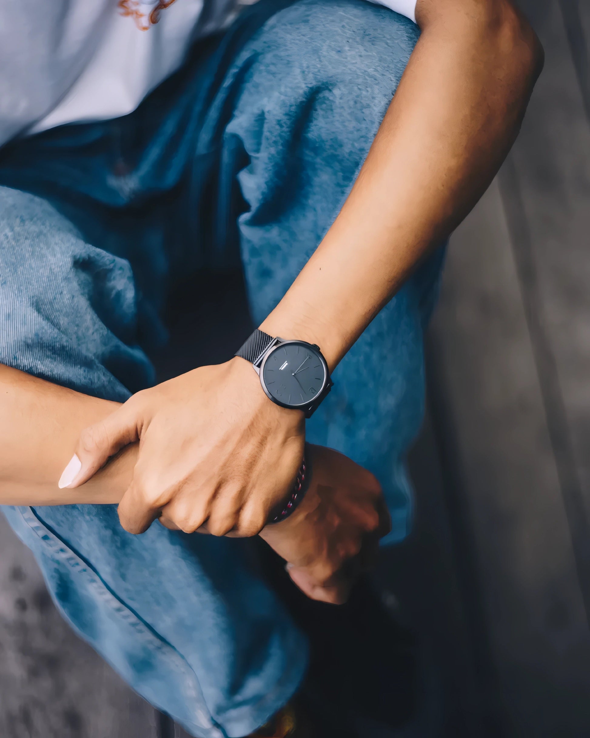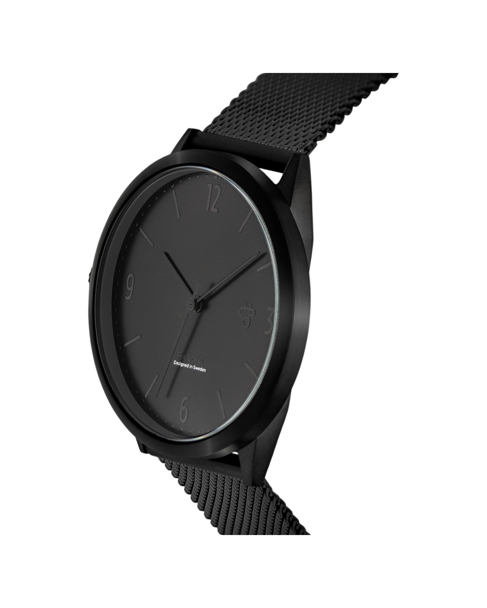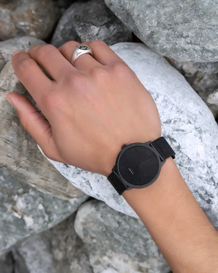 Wednesday Crüe delivers clean, confident design—bold simplicity driven by quartz precision. Black case, black dial, and black metal mesh strap—bold contrasts, sharp finish.