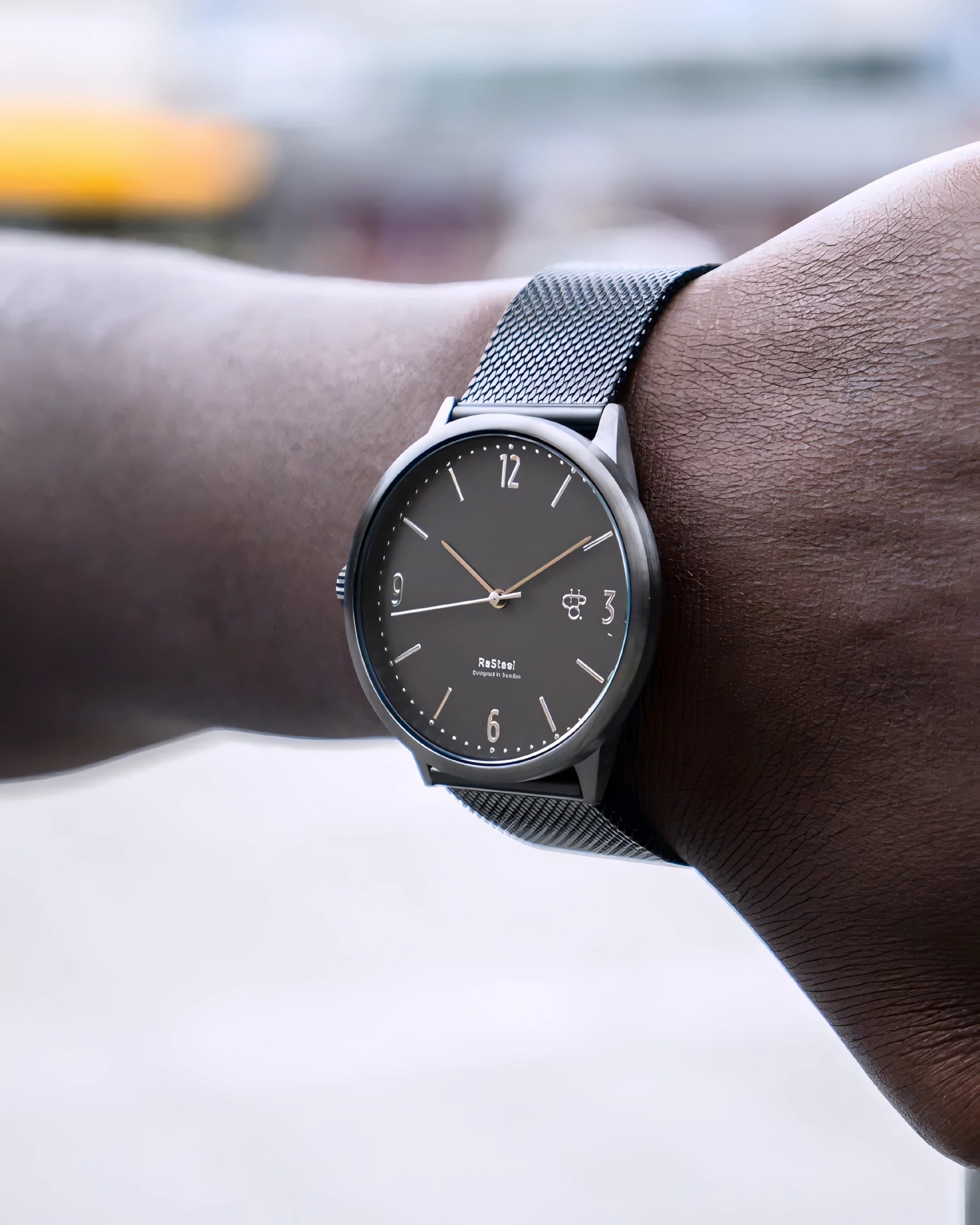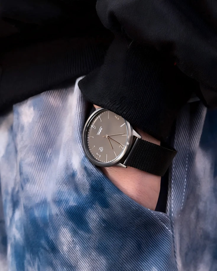 Wednesday Metal delivers clean, confident design—bold simplicity driven by quartz precision. Black case, black dial, and black metal mesh strap—bold contrasts, sharp finish.